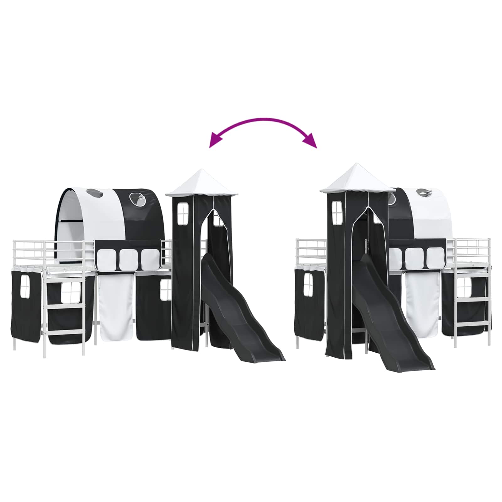 Tento moderný rám poschodovej postele pre deti so závesmi, oblúkom, šmykľavkou a vežou ponúka zábavné a praktické riešenie pre detské izby. Jeho moderný dizajn dodáva elegantný a svieži vzhľad, ktorý sa hodí všade. S vežou a šmykľavkou je to naozaj zábavné miesto na spanie a hranie. Premyslený dizajn šetrí priestor a perfektne sa hodí k aktívnemu životnému štýlu detí s prvkami, ktoré stimuluju ich fantáziu. Kombinácia pekného vzhľadu a praktických funkcií z neho robí ideálny nábytok do dynamických detských priestorov.