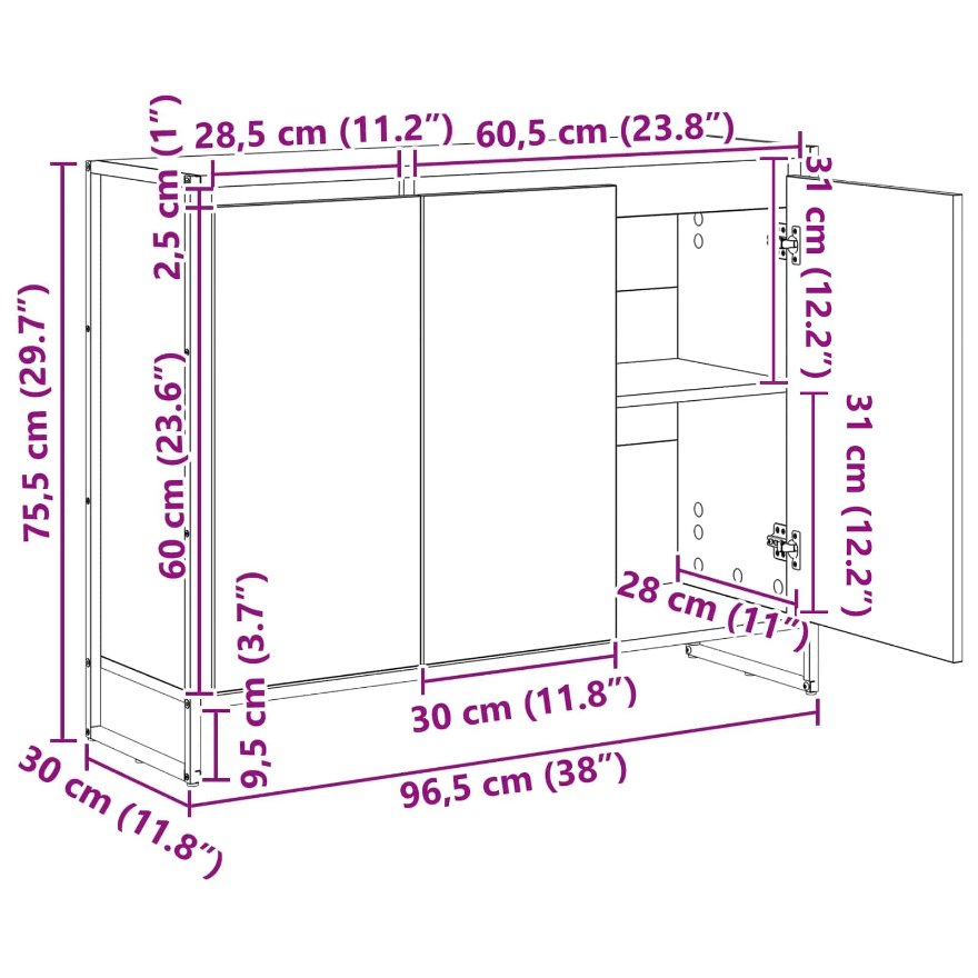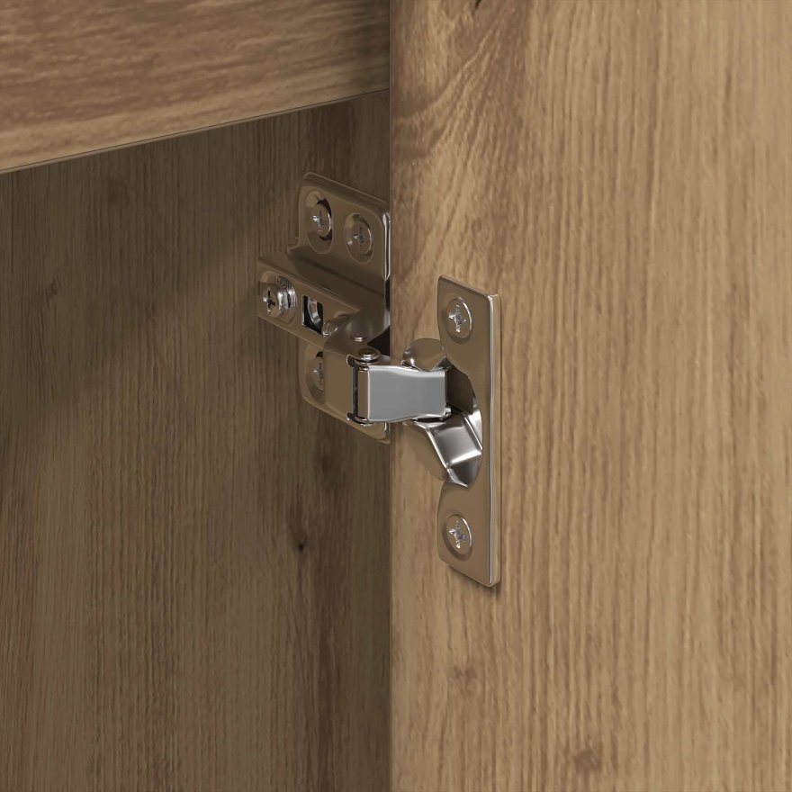• Len na vnútorné použitie Tento kabinet je ideálny do obývačky a vytvára harmonické úložné riešenie v interiéri. Jeho praktické funkcie sa perfektne hodia do vnútorného prostredia a zvyšujú komfort bez toho, aby stratili svoj zaujímavý charakter. Je to ideálny kus pre pridaní industriálneho štýlu do domu.