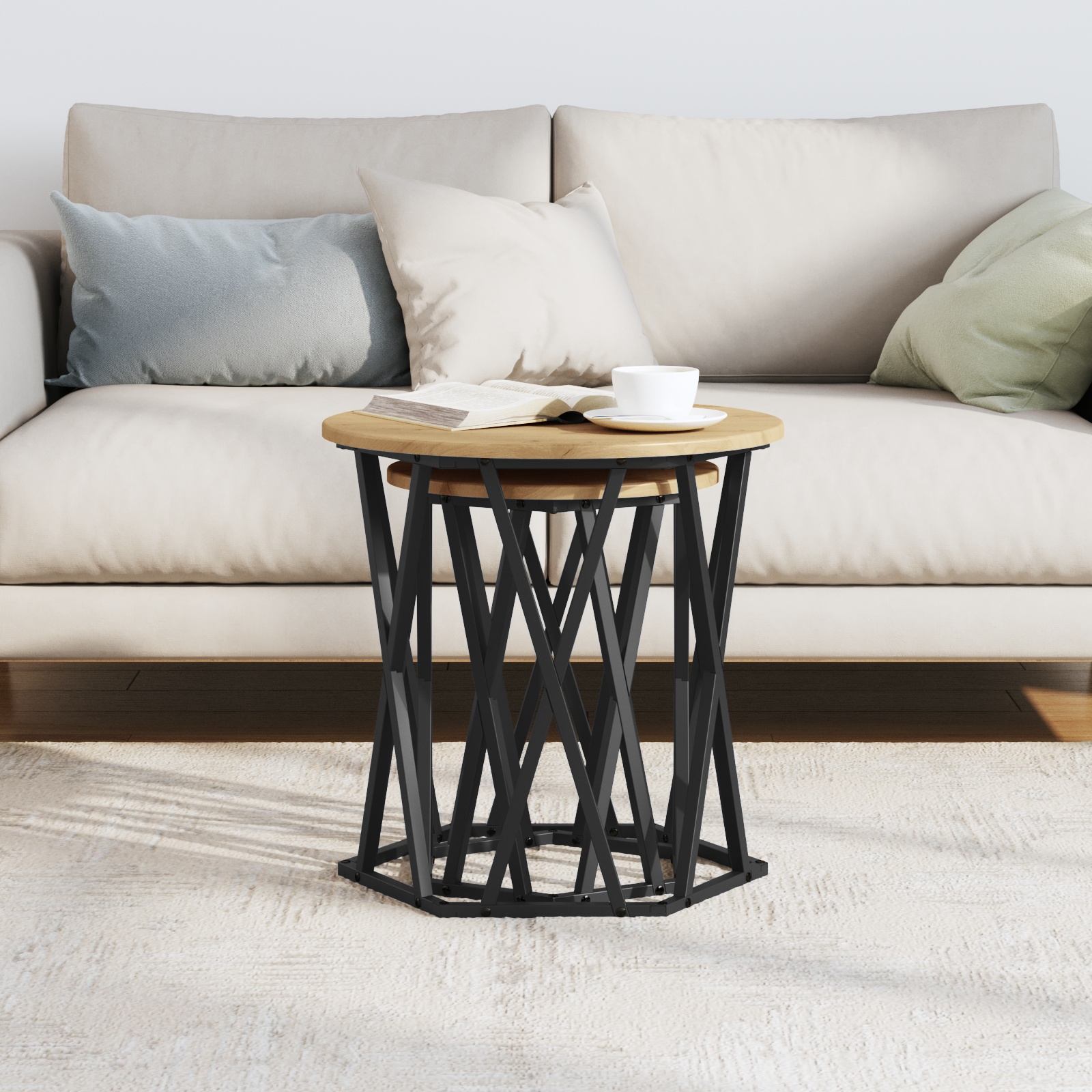 Tento okrúhly konferenčný stolík je must have pre každú modernú obývačku. Kombinuje funkciu so štýlom. Remeselný dubový vrch za super čiernym oceľovým rámom skvelo vyzerá, perfektne oživí tvoj priestor—ideálny na každodenné používanie alebo na hostenie.