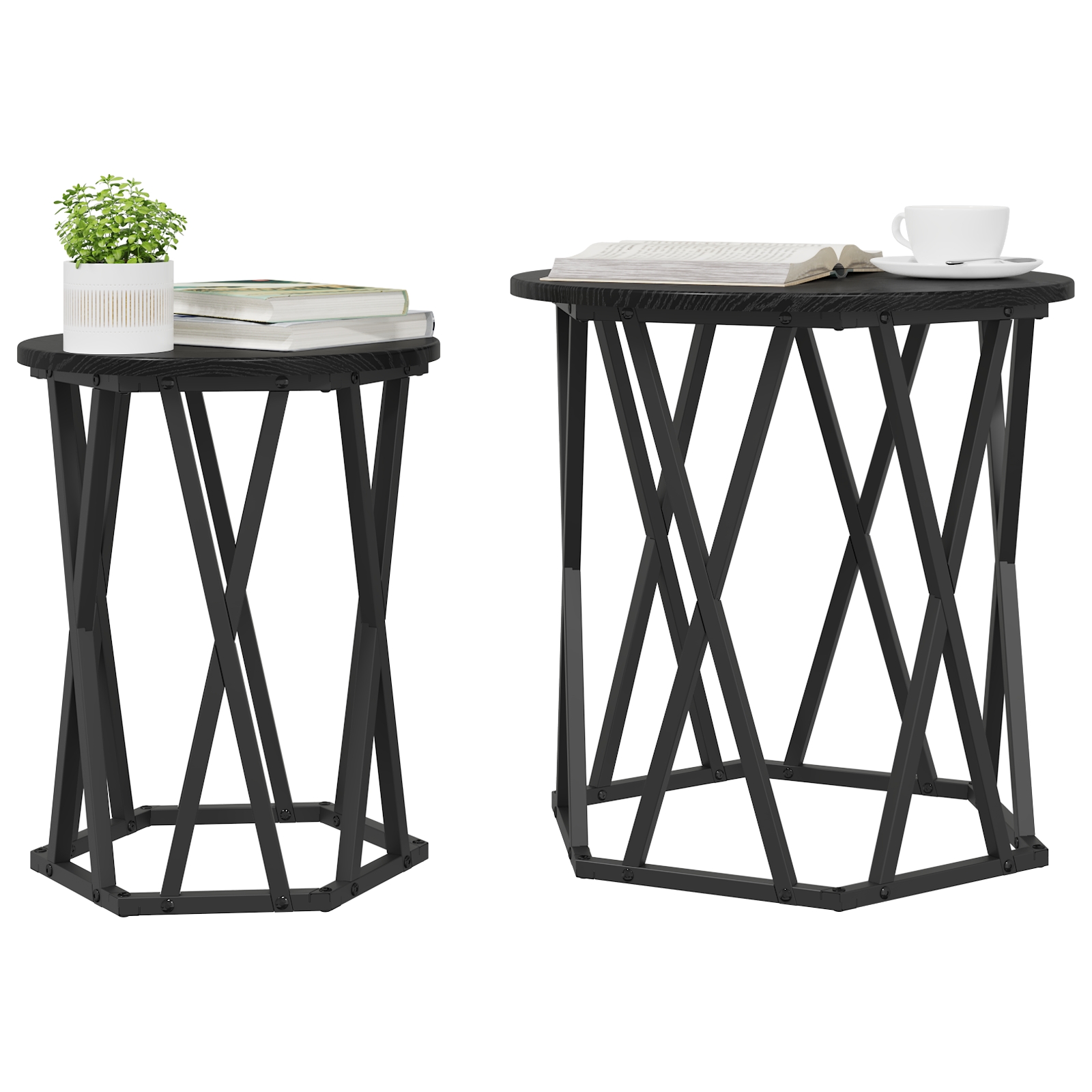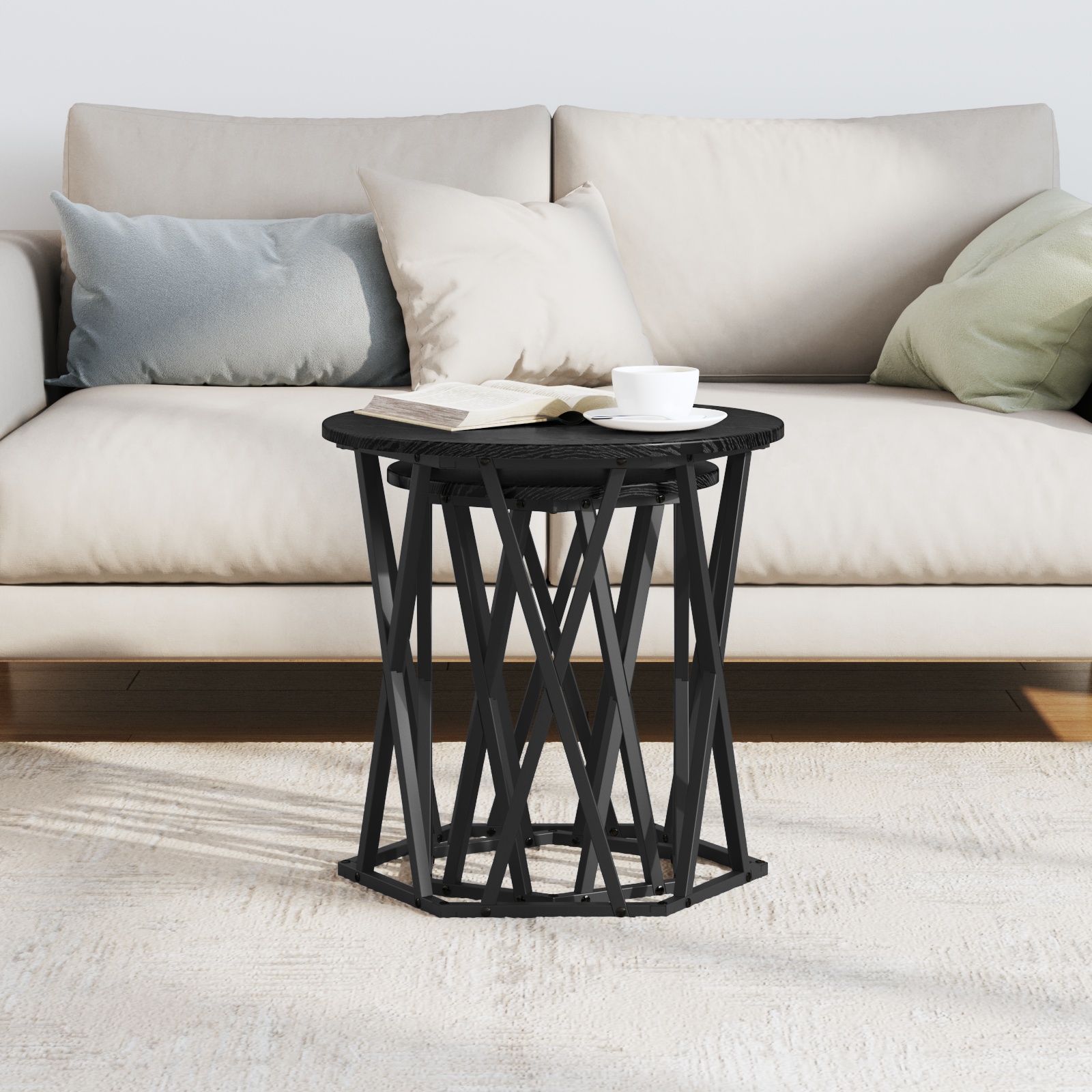 Tento šesťuholníkový konferenčný stolík spojuje štýl a praktickosť. Je perfektným stredobodom každej obývačky alebo lounge priestoru. Vyrobený z odolného dreva a kovu, jeho elegantný čierny dubový povrch dodáva nádych elegancie a garantuje hladký povrch, ktorý ladí s moderným a minimalistickým štýlom.