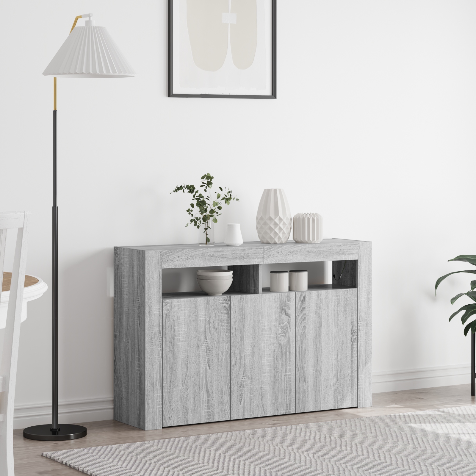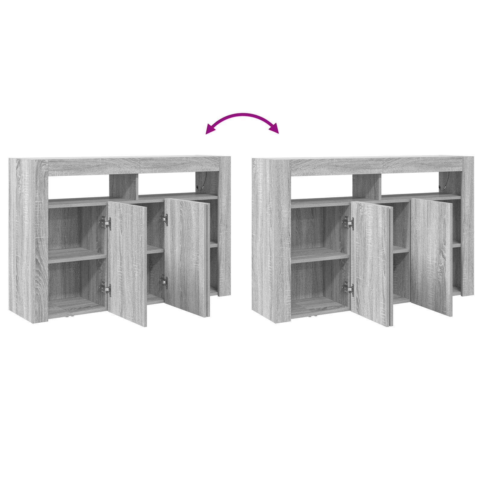 Moderný sivý Sonoma bufet je skvelý kus nábytku, ktorý sa hodí do každého domova. Je funkčný a dobre vyzerá, ideálny do obývačiek alebo jedální. Minimalistický dizajn s sivou sonoma povrchovou úpravou sa perfektne kombinujem s LED osvetlením pre útulnú atmosféru, či už na stretnutia alebo rodinné večere.