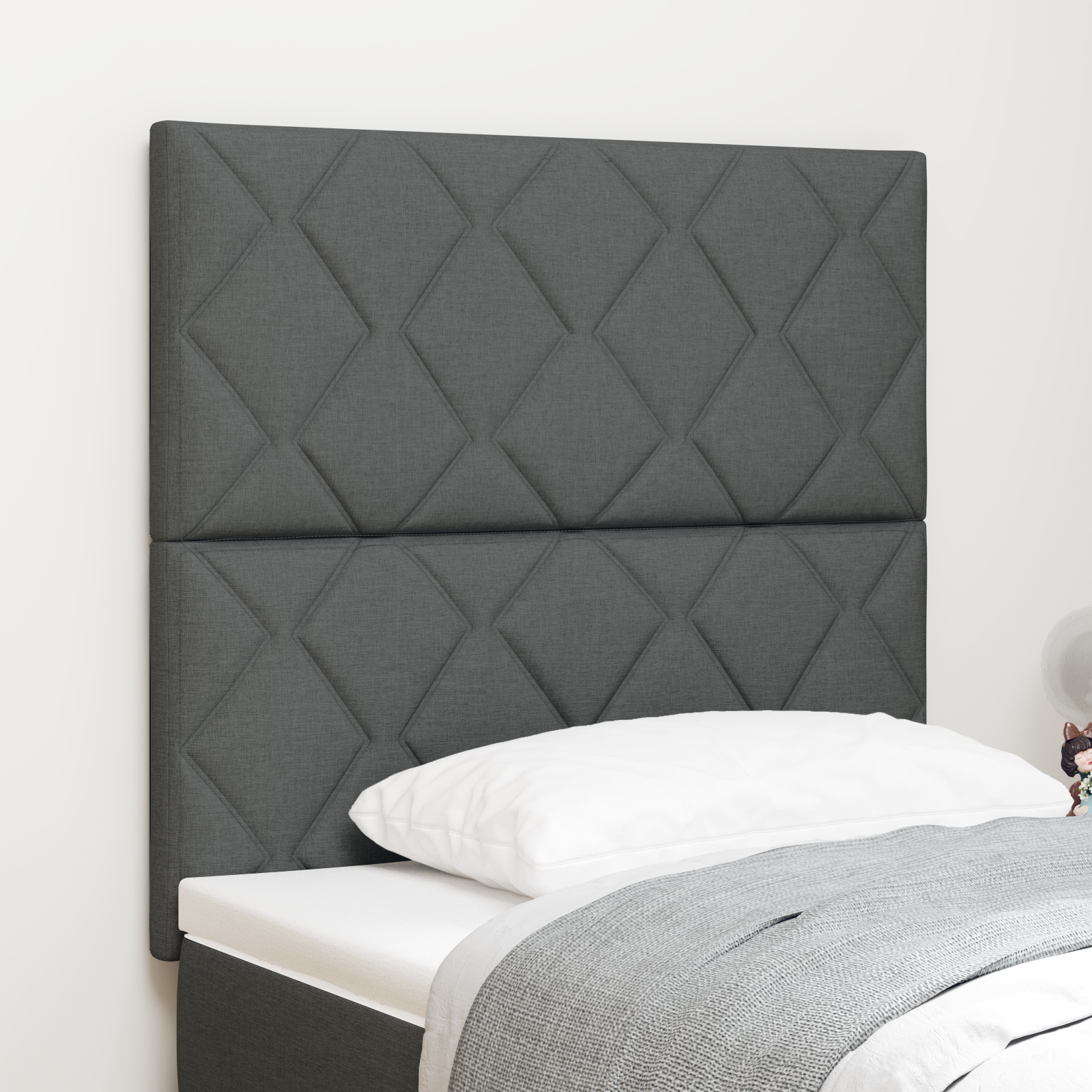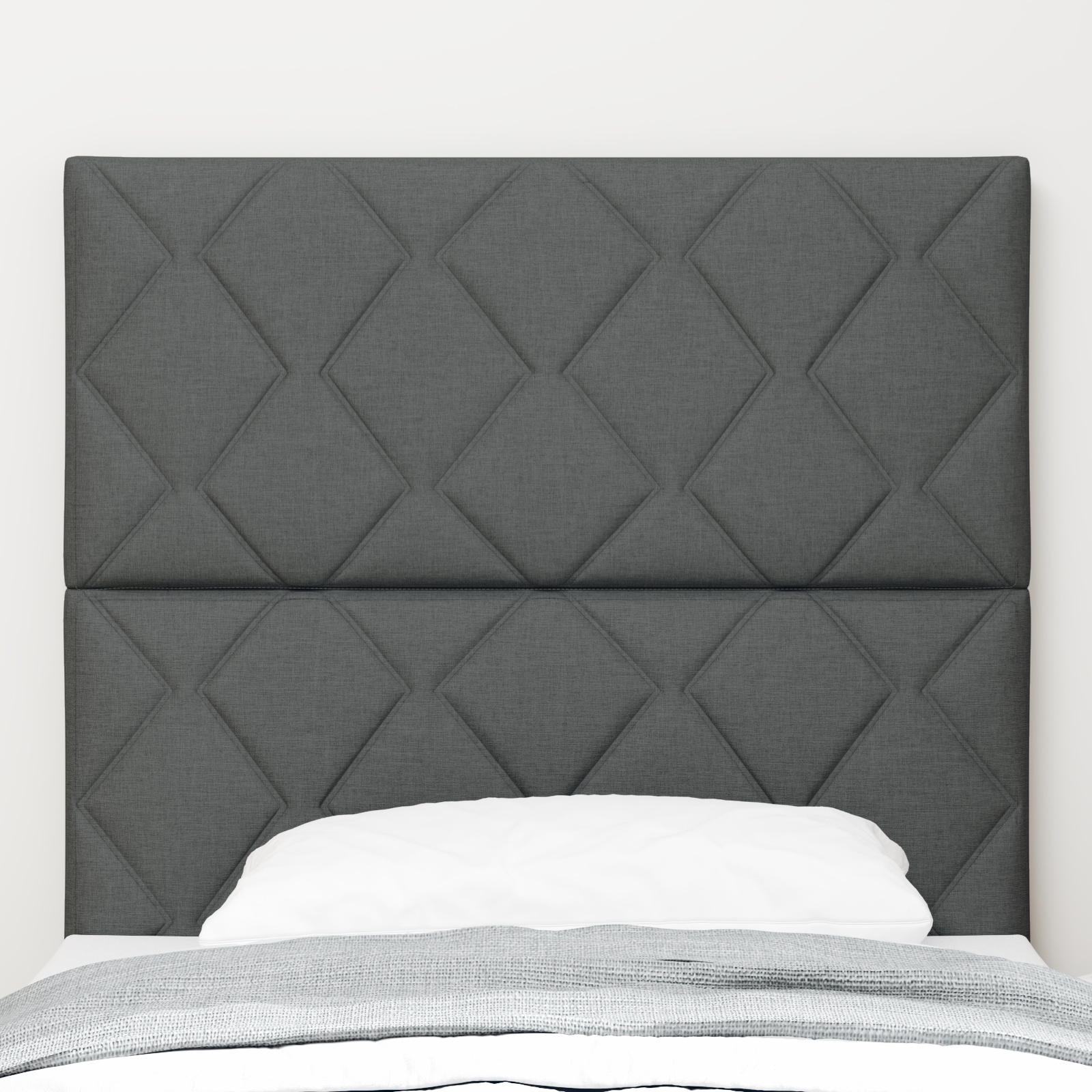Toto čelo postele sa chváli trendy dizajnom diamantových blokov, ktorý dodáva šmrnc každej spálni. Jeho noblesná tmavosivá látka nie len že dobre vyzerá, ale aj osviežuje dekoráciu a poskytuje ti pohodlné miesto na relax.