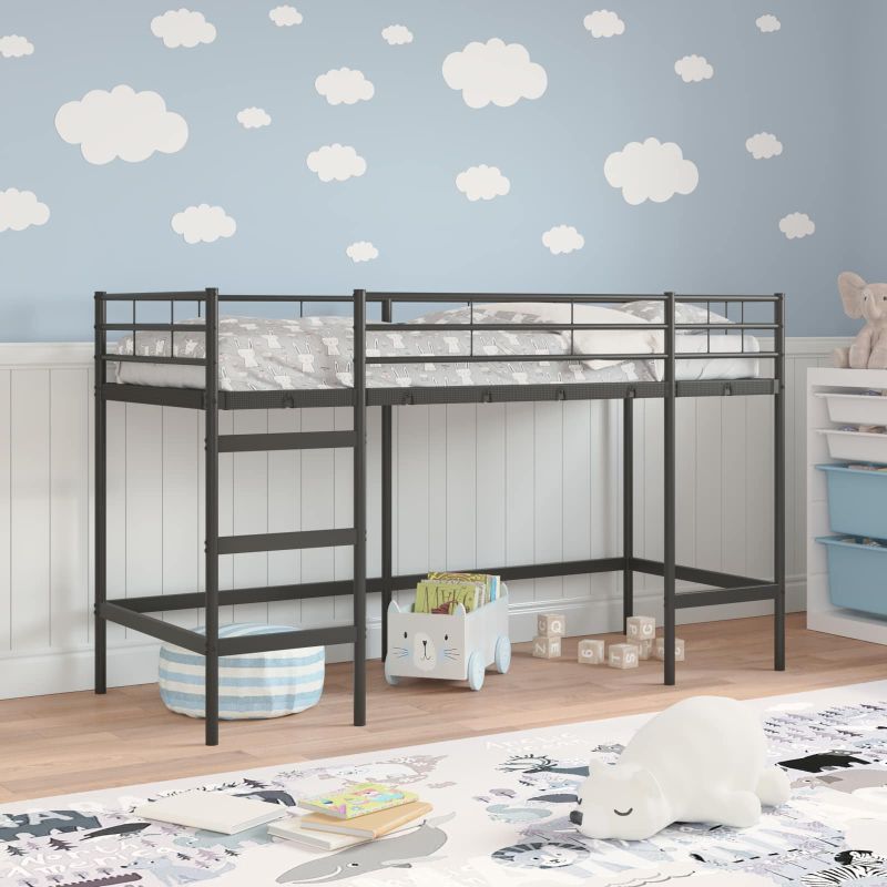 Elegantná konštrukcia z práškovo lakovaného kovu zabezpečuje stabilný a robustný spací priestor, zatiaľ čo kompaktný dizajn ponúka inovatívny spôsob, ako šetriť priestor. Ideálne pre dobrodružné deti, tento rám poskytuje pohodlné miesto na spanie a povrch pod ním môže slúžiť ako študijný alebo herný kútik. S matným povrchom vytvára sofistikovanú atmosféru, ktorá zvýrazní akýkoľvek interiér.