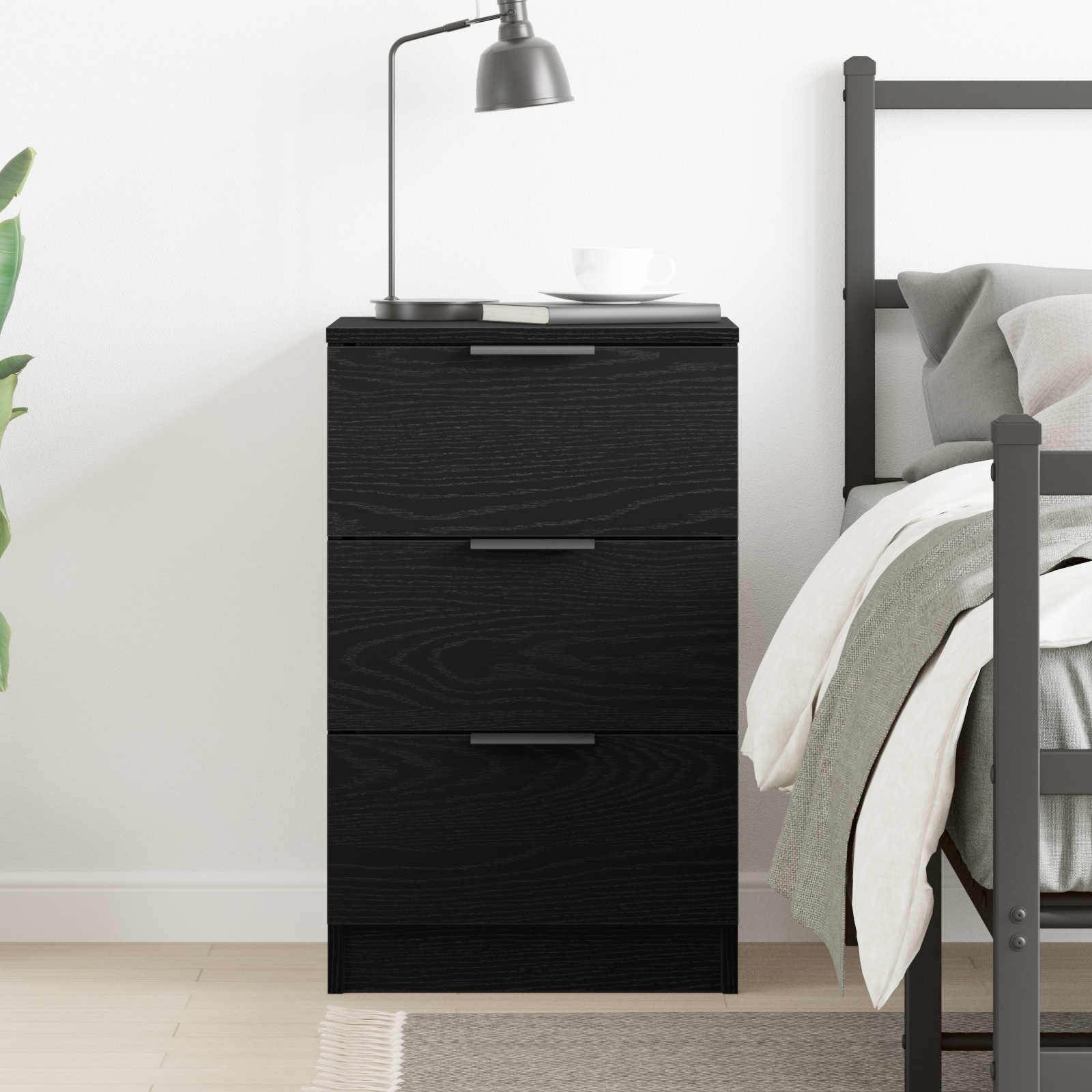 • Optimálne úložisko: S tromi pevnými zásuvkami má dostatok miesta pre tvoje veci a pomáha udržať nočný stolík usporiadaný.