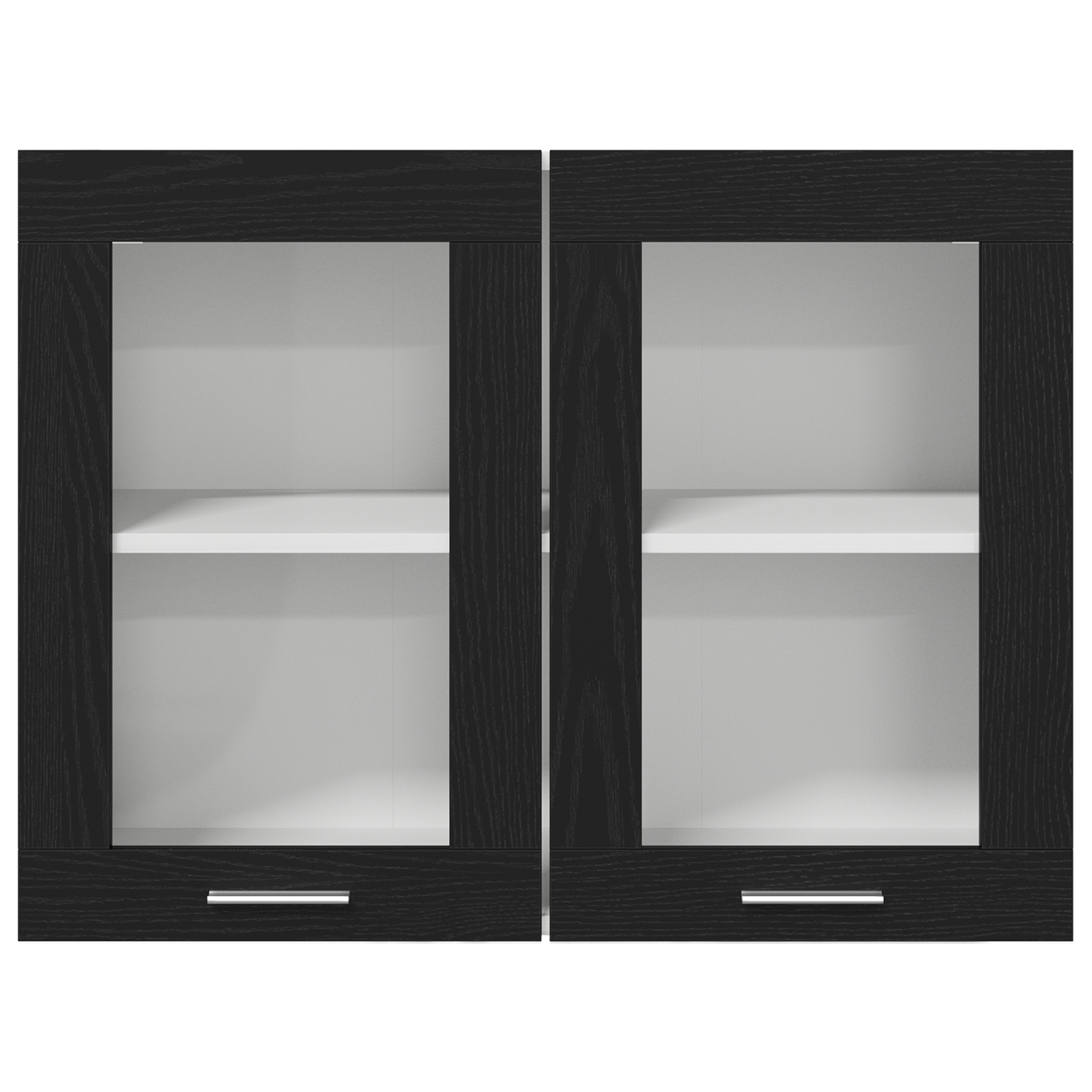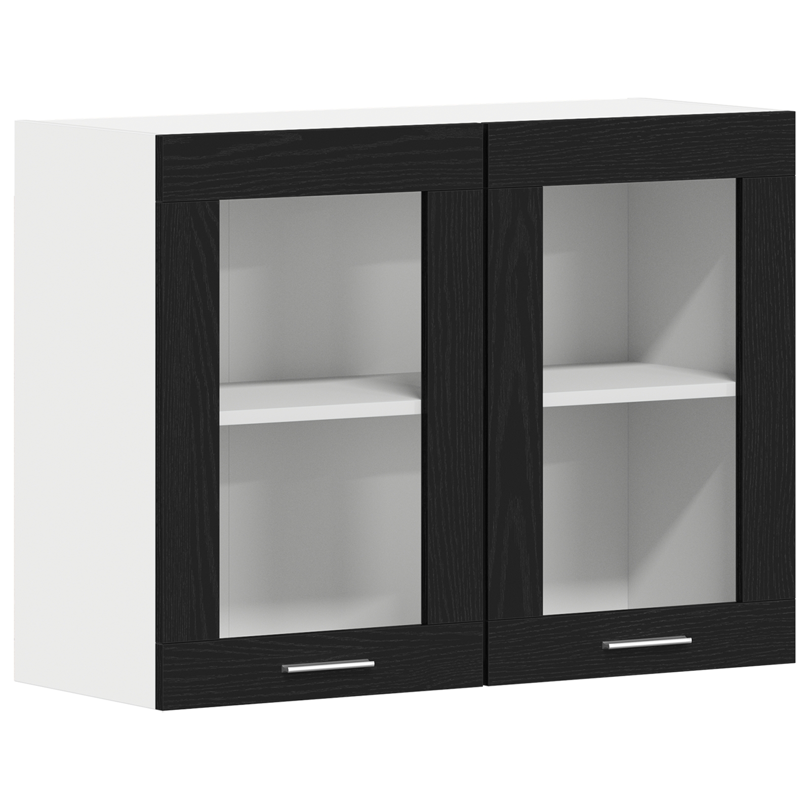 • Sklenené dvere: Dve sklenené dvere umožňujú nazrieť dovnútra, ideálne na vystavenie tvojho riadu, pričom všetko ostáva na dosah. Štýlový detail pre funkčnosť v kuchyni.