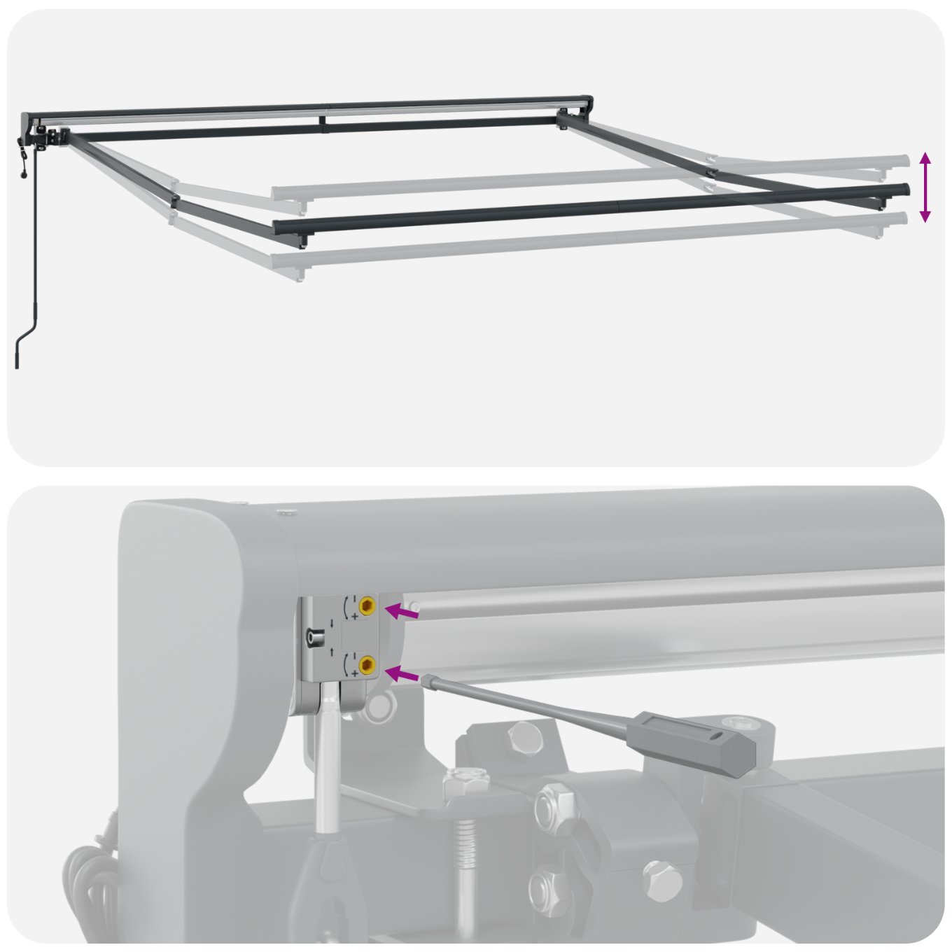 Táto elektrická markíza je moderné riešenie, ktoré poskytuje veľa tieňa a dodáva štýlový minimalistický akcent do tvojho vonkajšieho priestoru. S elegantným antracitovým povrchom, zlepšuje tvoj zážitok vonku a umožňuje ti nastaviť tieň podľa počasia. Ideálne na relax nebo hostiny.