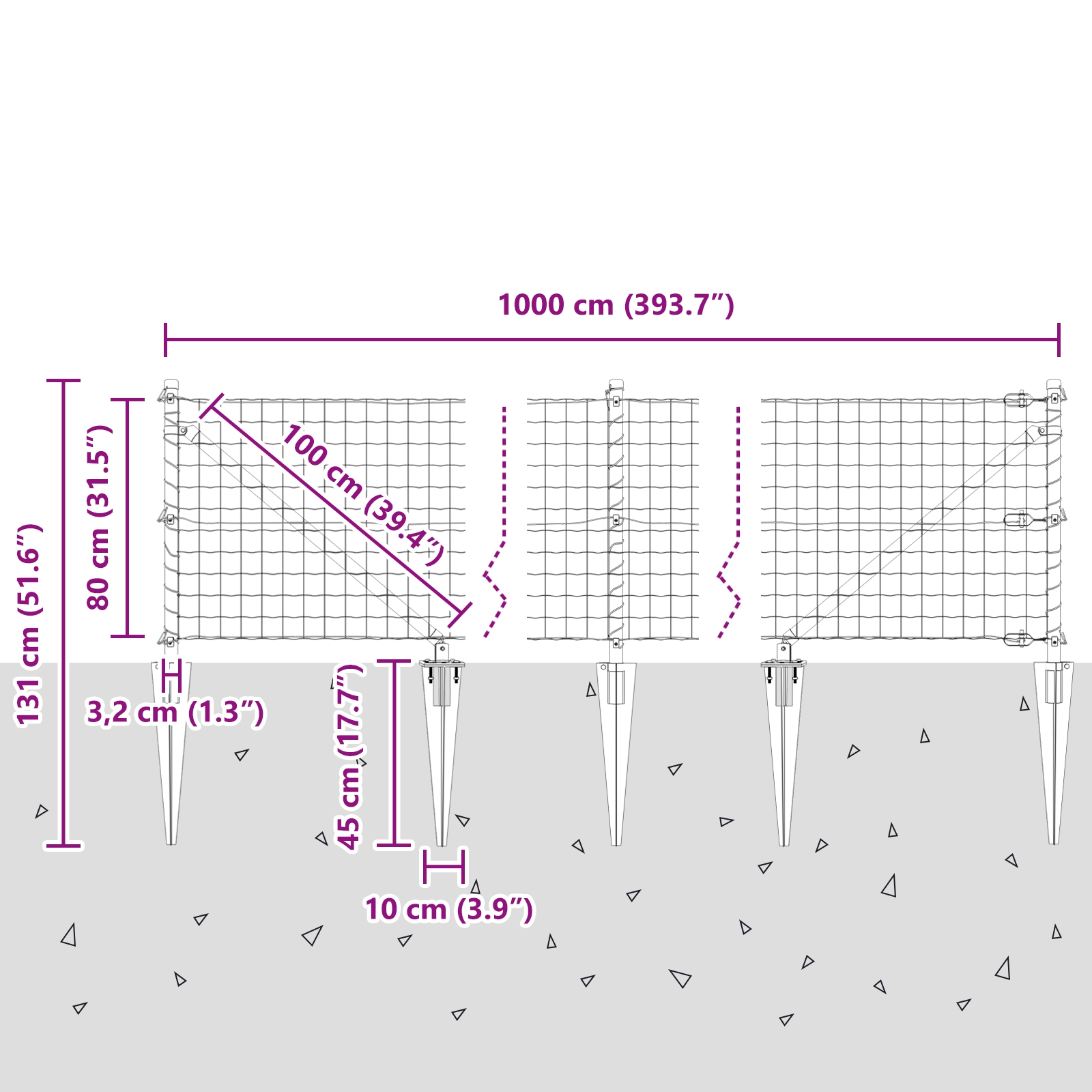 • Delivery Contains: Fence roll, connectors, grounding spikes