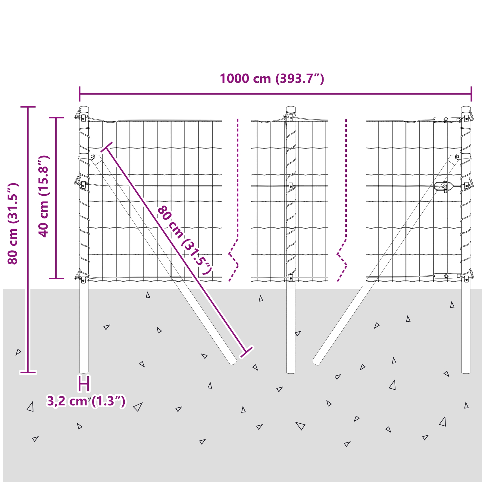 vidaXL Euro Oplôtok s 7 stĺpikmi 0.4x10 m Pozinkovaná oceľ Sivá