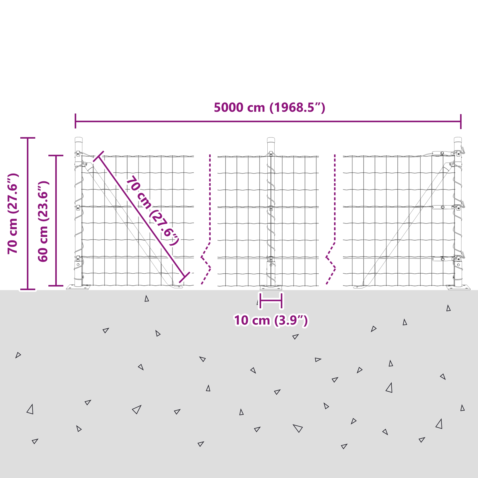 vidaXL Euro plot s 13 plátovanými stĺpmi 0.6×50 m pozinkovaná oceľ