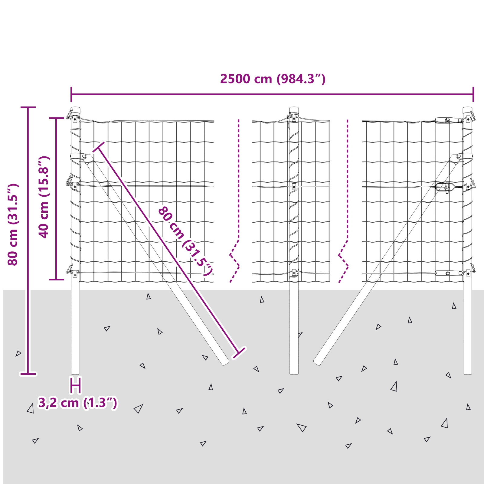vidaXL Euro plot s 13 stĺpikmi 0.4x25 m pozinkovaná oceľ sivá