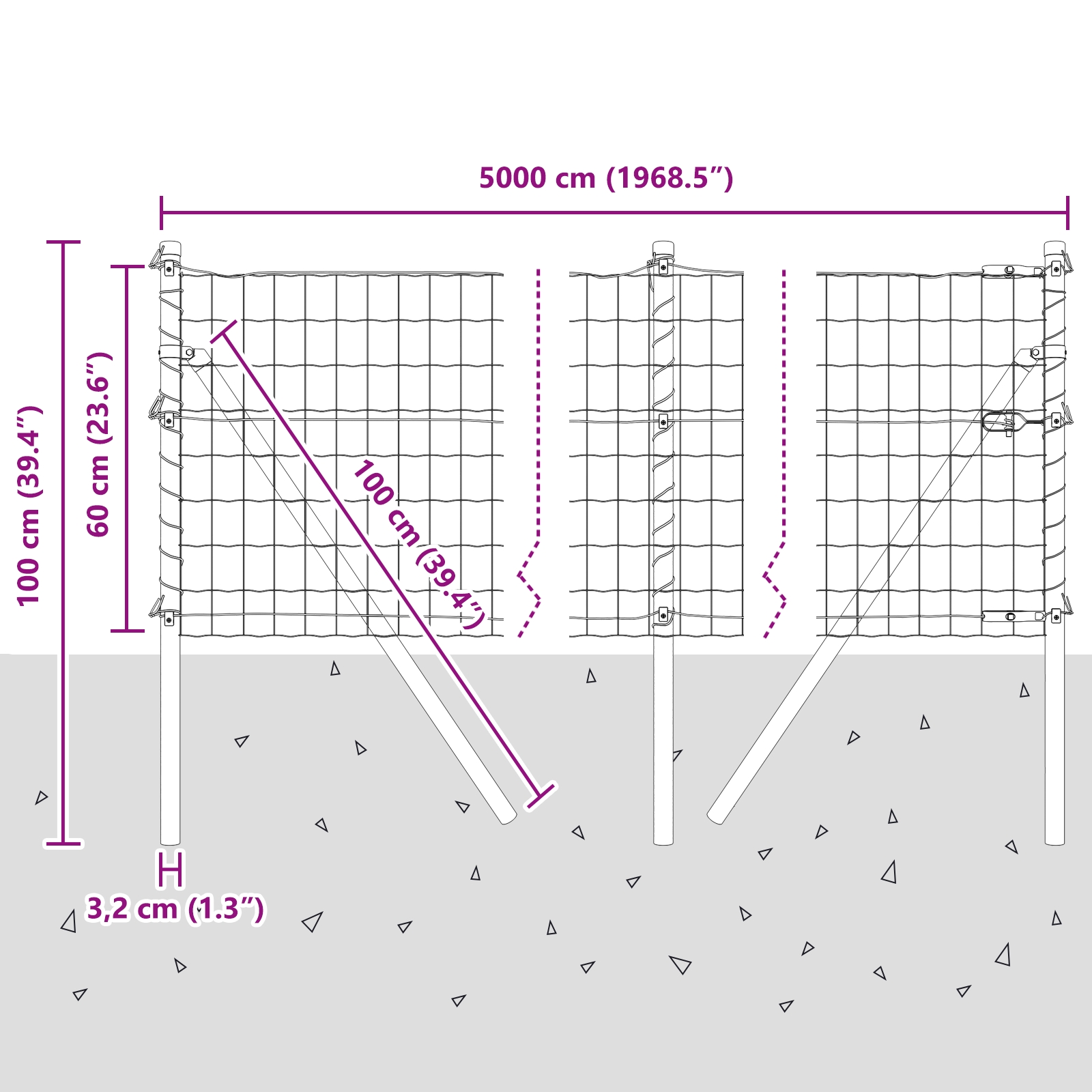 vidaXL Euro plot s 13 stĺpikmi 0.6×50 m pozinkovaná oceľ sivá