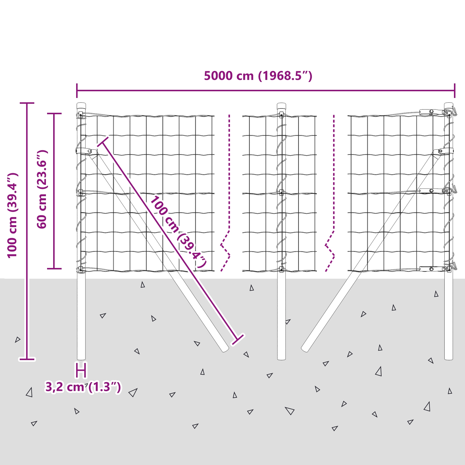 vidaXL Euro plot s 13 stĺpikmi 0.6x50 m pozinkovaná oceľ v sivej farbe
