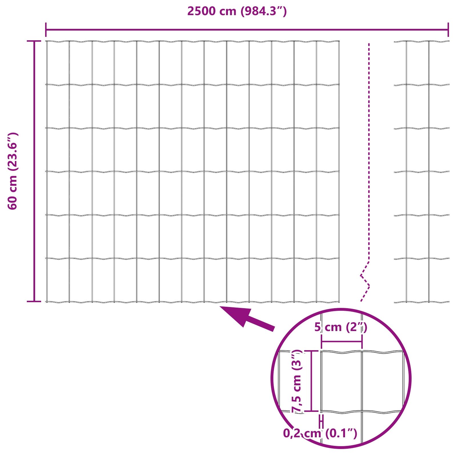 vidaXL Euro plot s 13 stĺpmi 0.6x25 m pozinkovaná oceľ