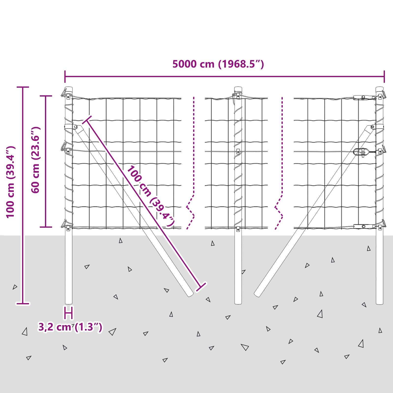 vidaXL Euro Plot s 13 stĺpmi 0.6x50 m pozinkovanej ocele sivý