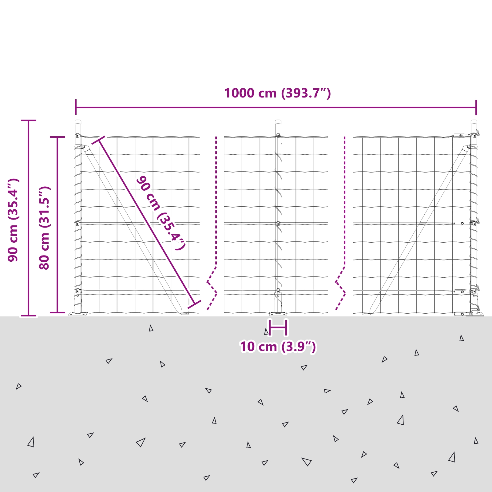 vidaXL Euro Plot s 7 flákovanými stĺpmi 0.8×10 m Pozinkovaná Oceľ