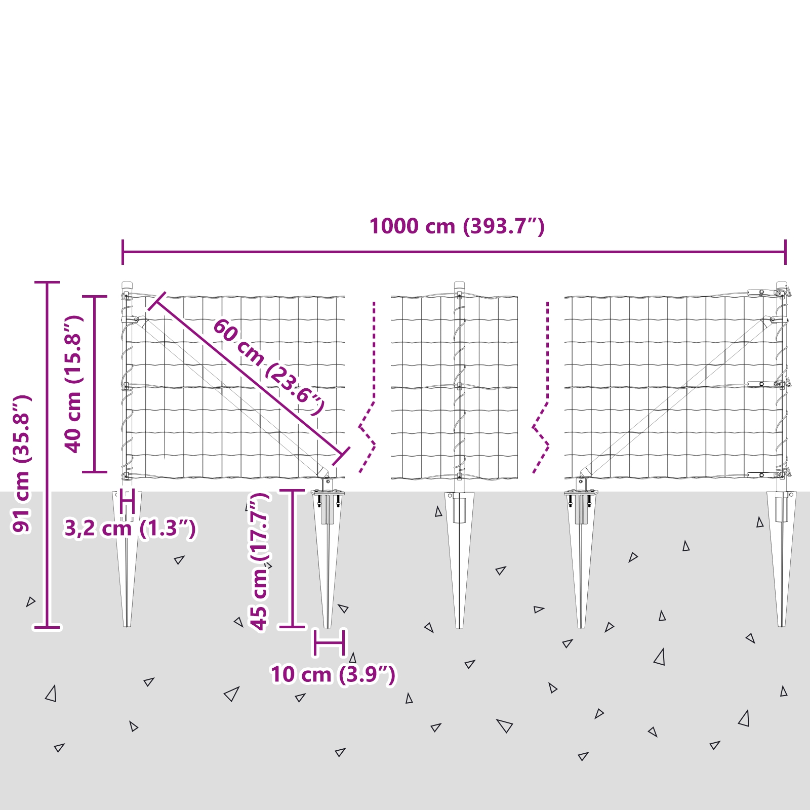 vidaXL Euro plot s 7 hrotovými stĺpmi 0.4×10 m pozinkovaný kov sivý