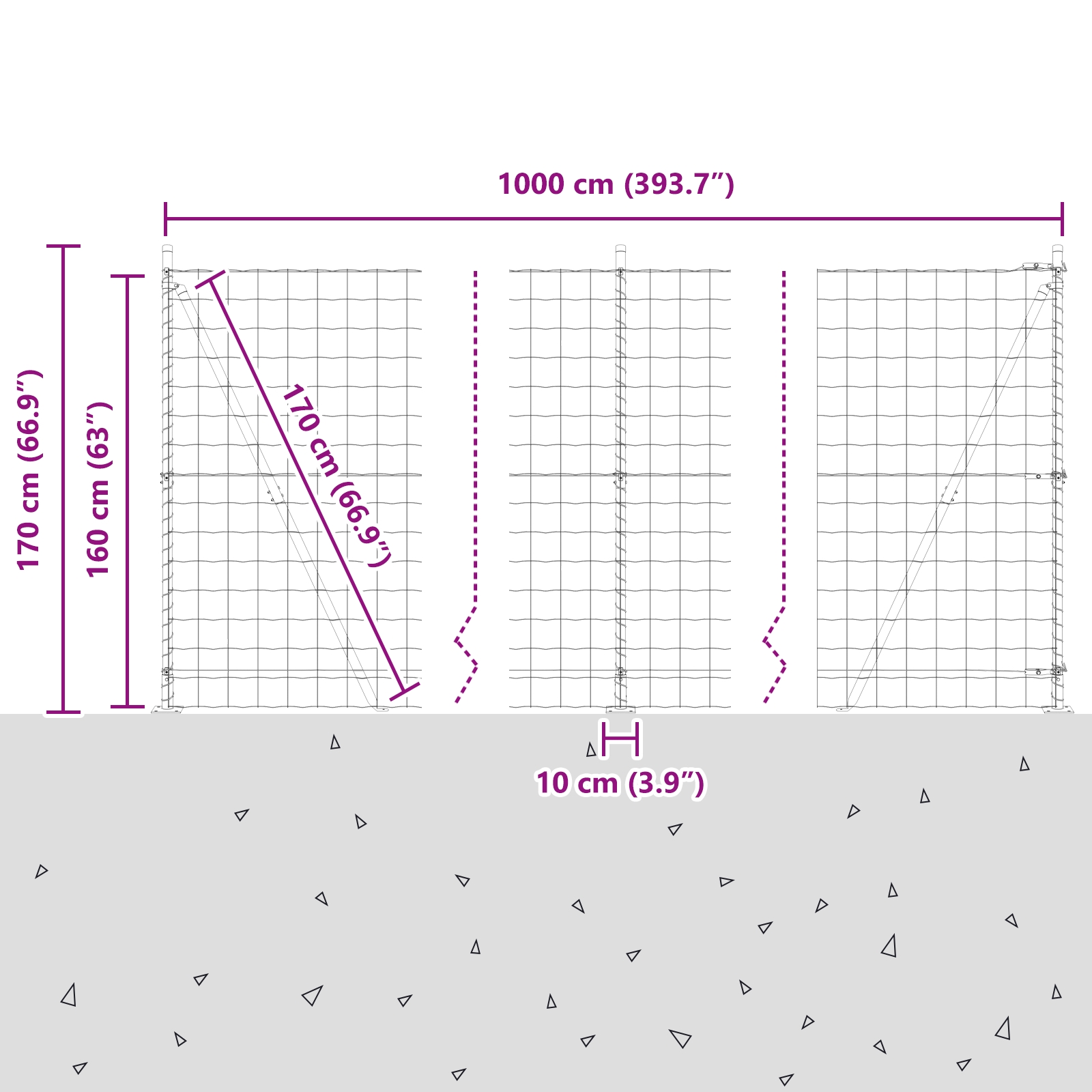 vidaXL Euro plot s 7 rozšírenými stĺpmi 1.6x10 m z pozinkovanej ocele