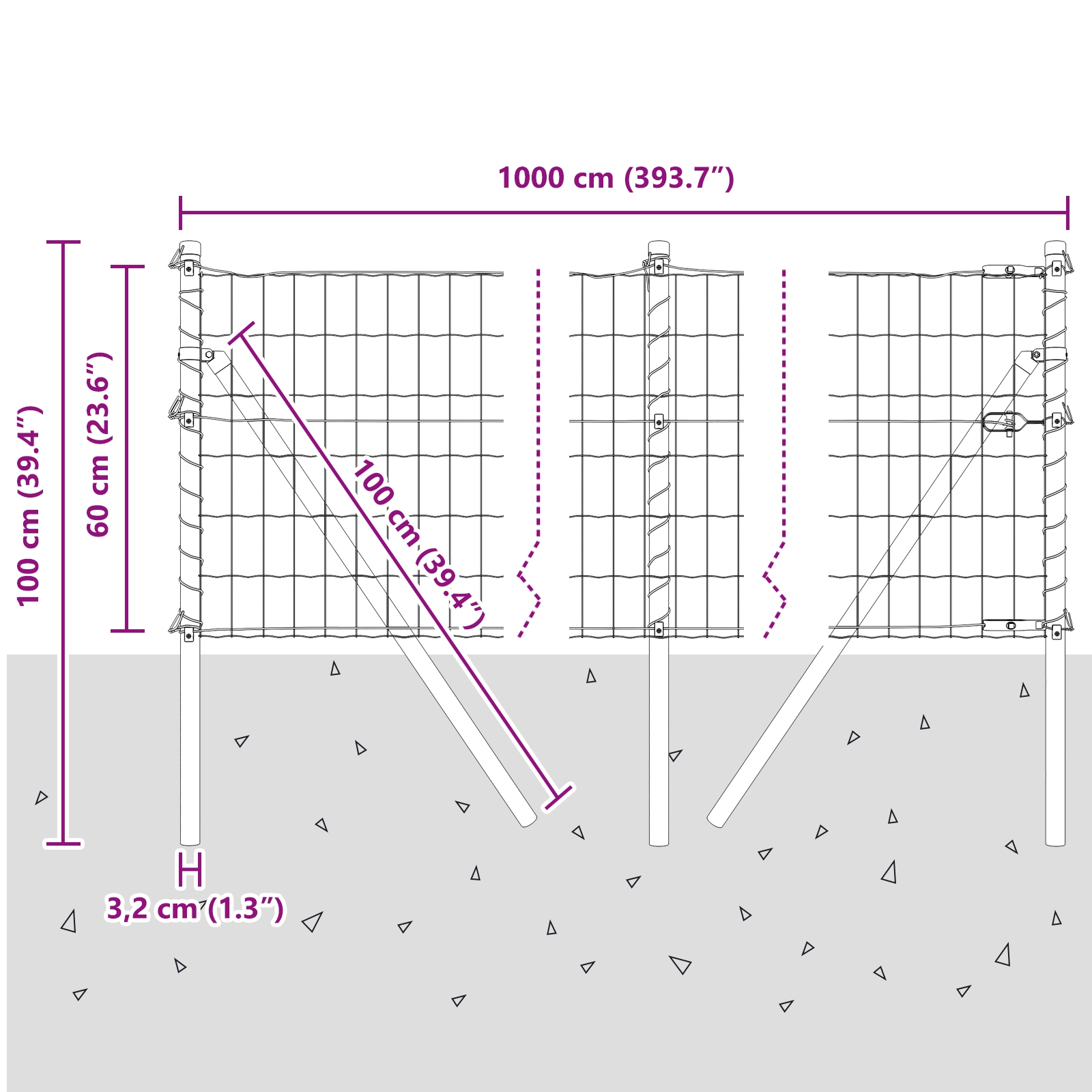 vidaXL Euro plot s 7 stĺpmi 0.6×10 m Galvanizovaná oceľ