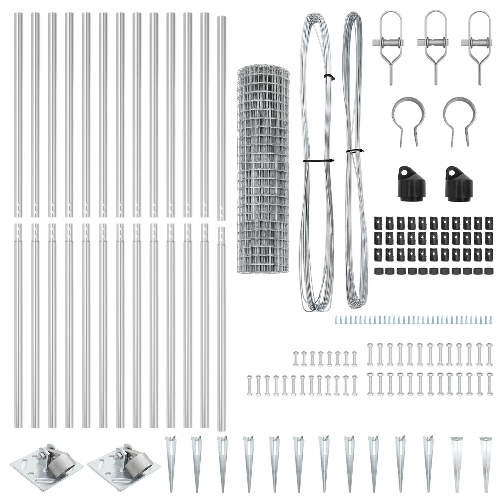 • Kompletný balíček: Prichádza so všetkým, čo potrebuješ na rýchlu montáž, vrátane oplotenia, špicatých kotviacich prvkov a držiakov drôtu, takže urobíš všetko s prehľadom.