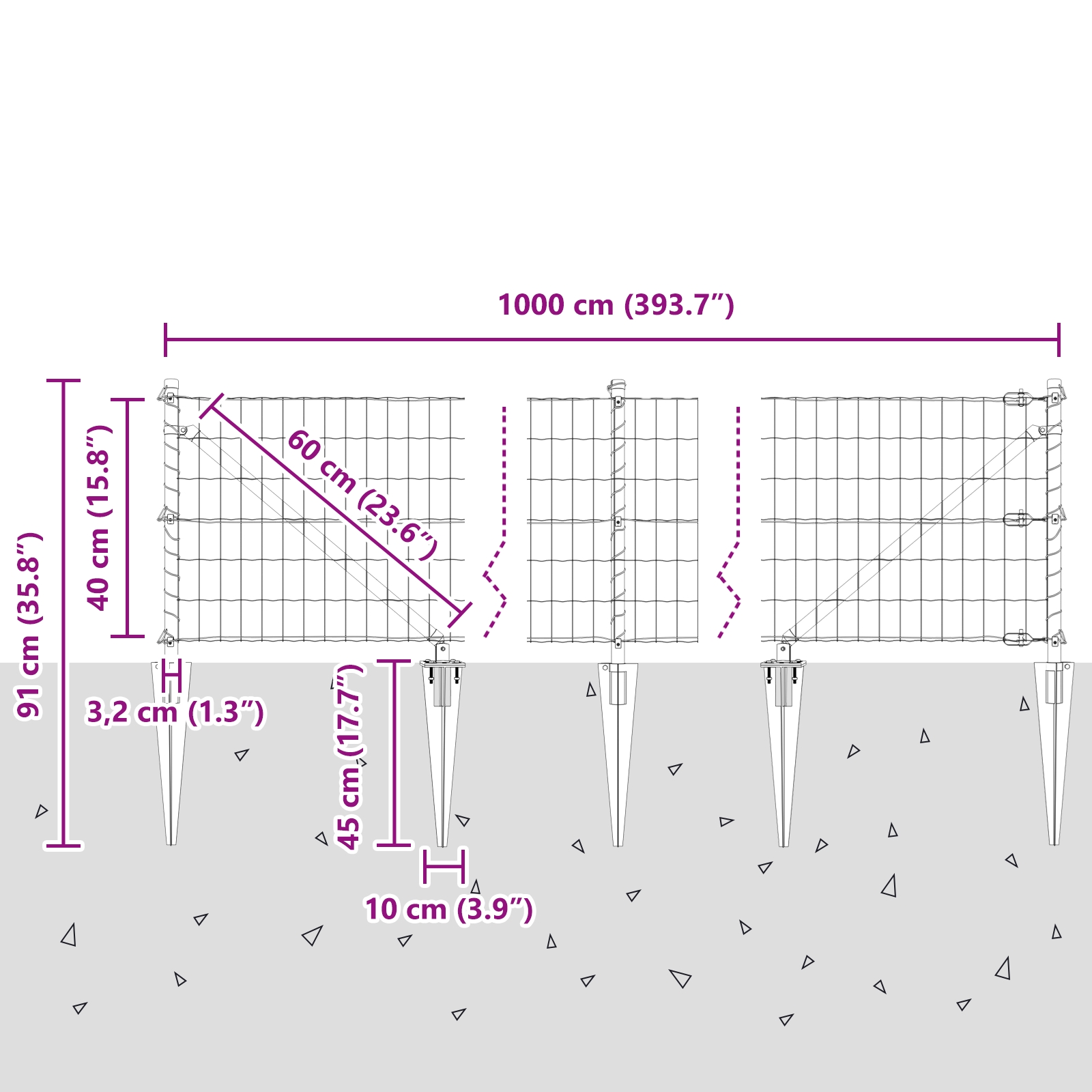 vidaXL Euro plot je presne to, čo potrebuješ na skrášlenie vonkajších priestorov a ich zabezpečenie. Je vyrobený z odolnej pozinkovanej ocele a má pekný zelený povrch, skvele sa hodí do každej záhrady a plní svoju funkciu.