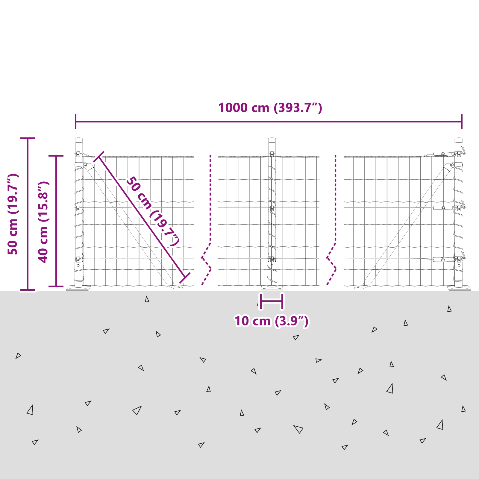 vidaXL Euro plot so 7 príchytnými stĺpikmi 0.4×10 m pozinkovaná oceľ