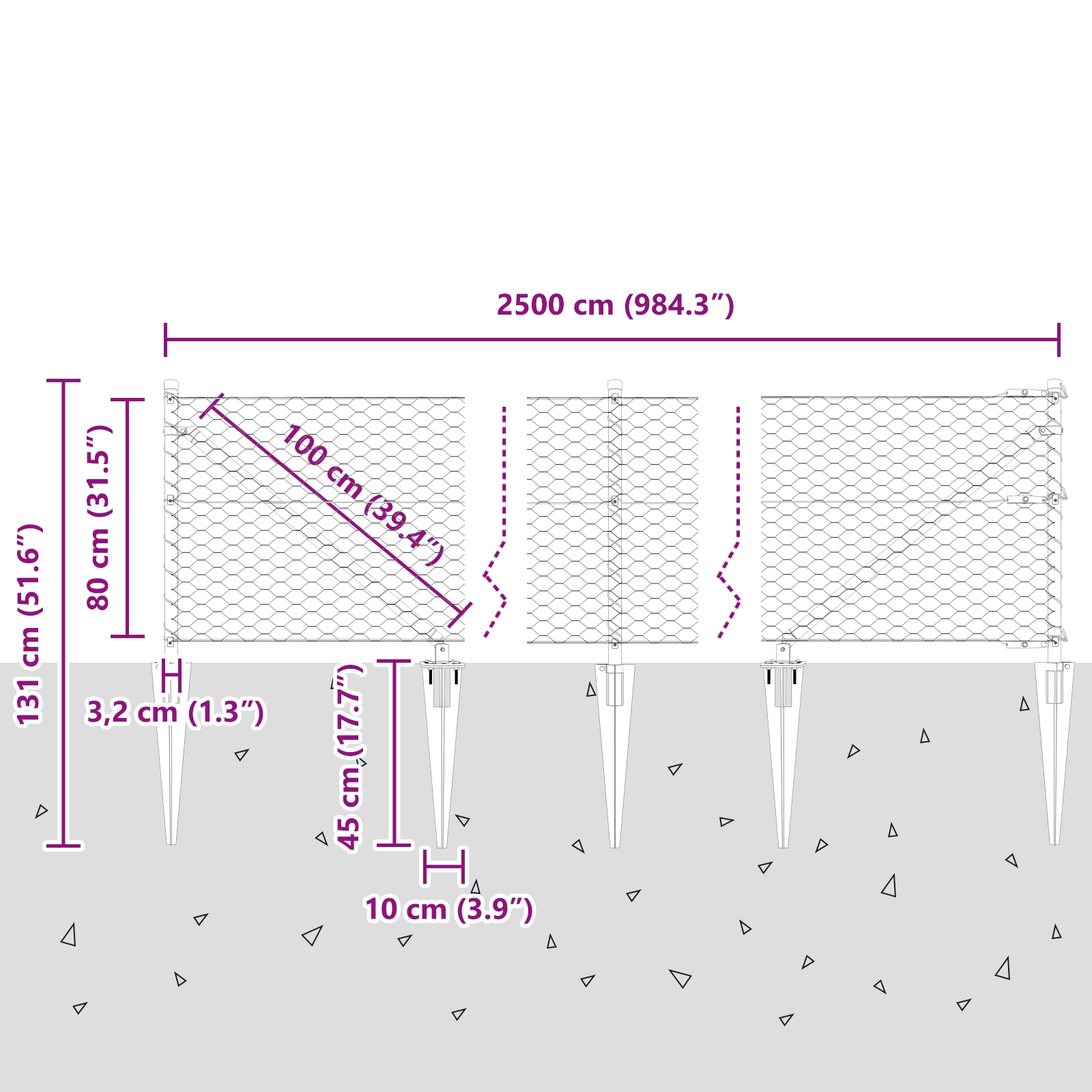 vidaXL Hexagon Fence 0.8×25 m Zazinkovaná oceľ