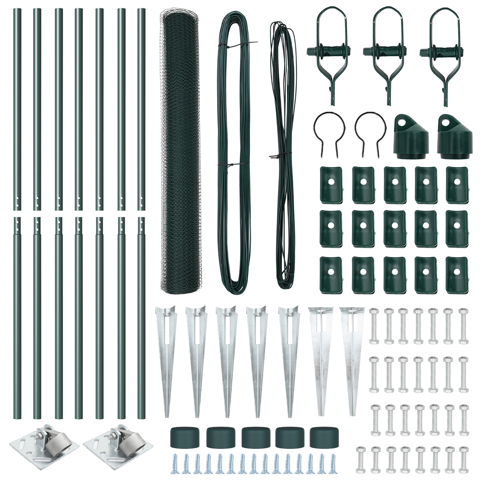vidaXL hexagonálna oplocenka zelená 1,2×10 m oceľ, vidaXL oplocovacie stĺpy s fixkou 7 ks Ø32 mm 140 cm pozinkovaná oceľ