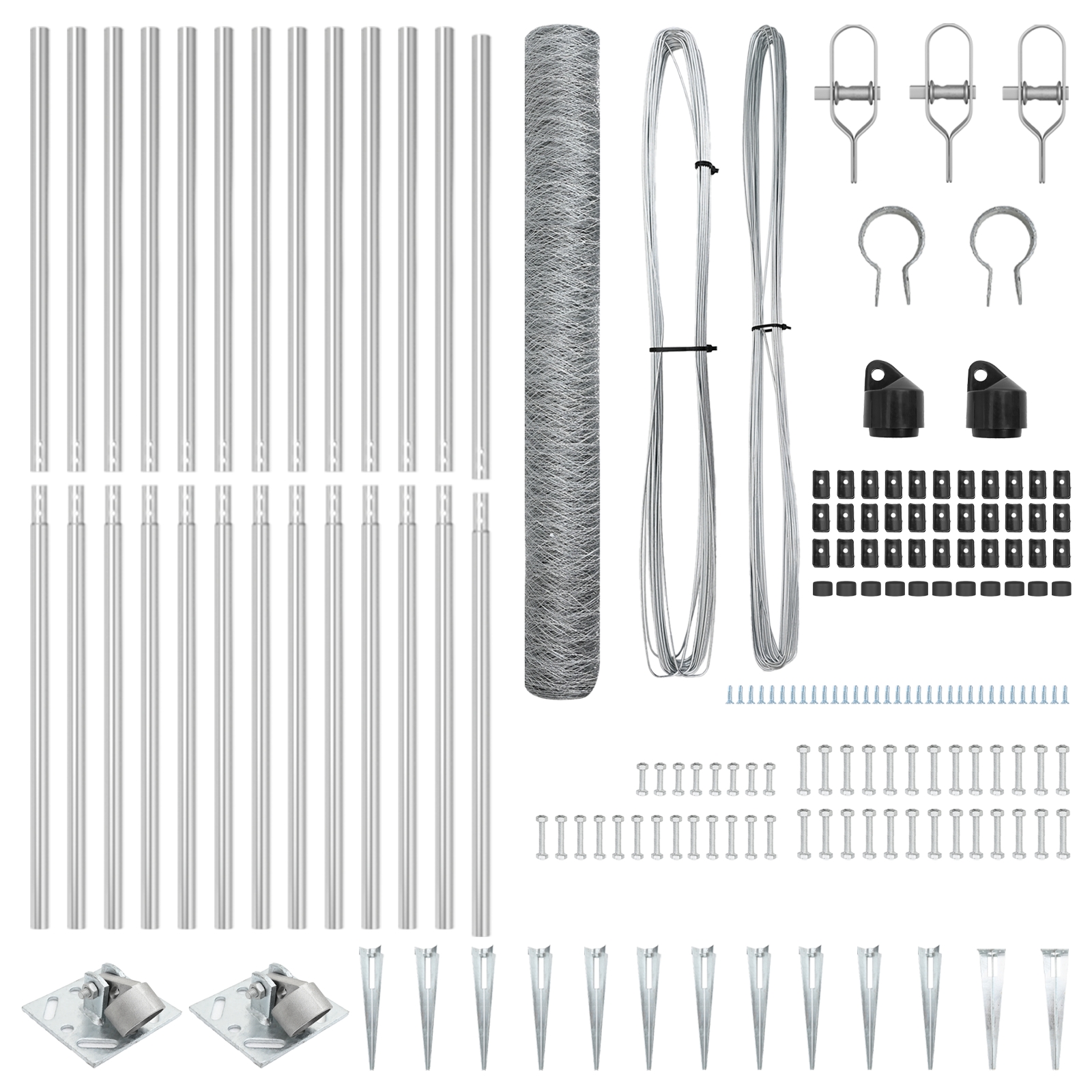 • Kompletná sada: Obsahuje všetko na inštaláciu: stĺpy, mriežku, kotvy a drôt, takže máte kompletné nastavenie bez nutnosti ďalších nákupov.