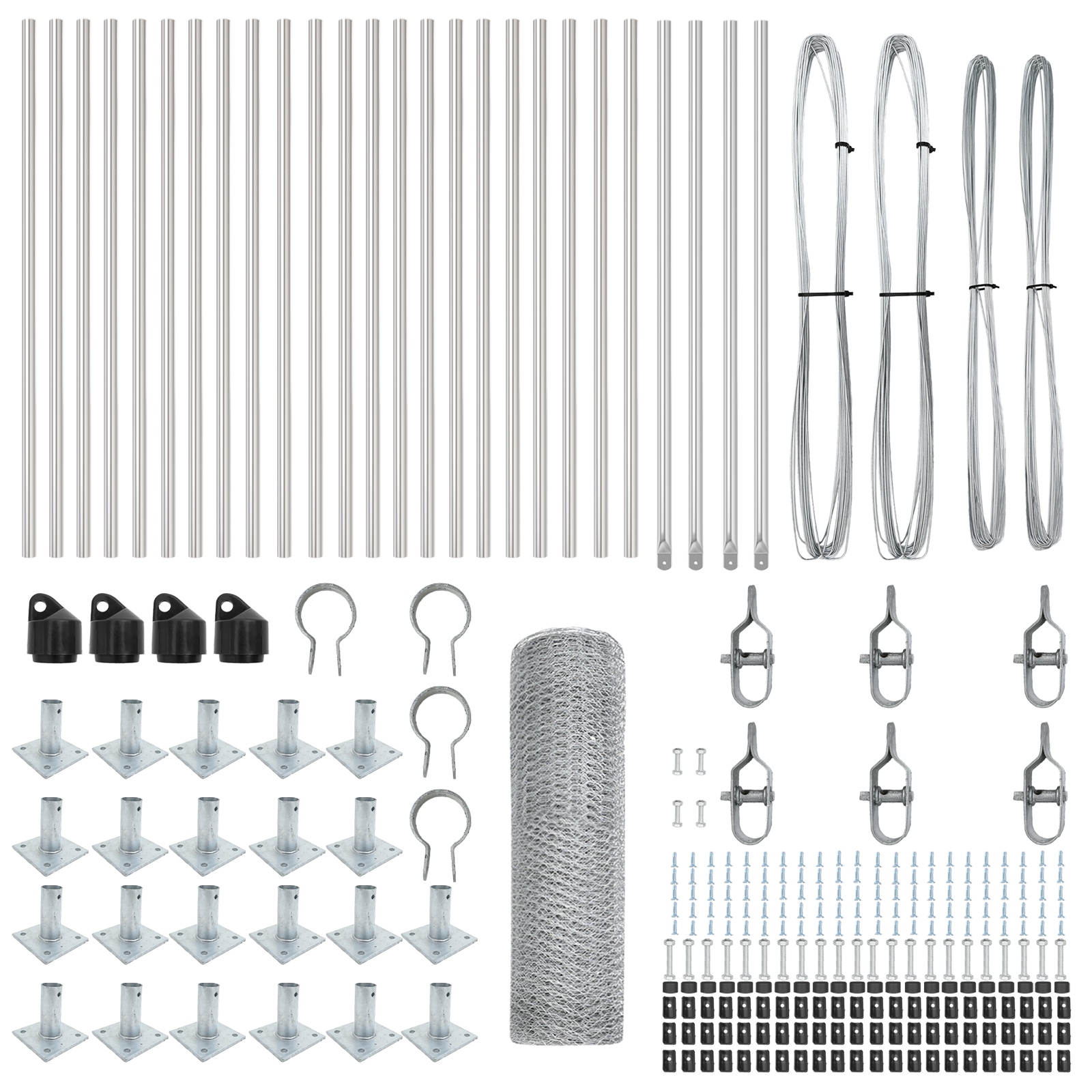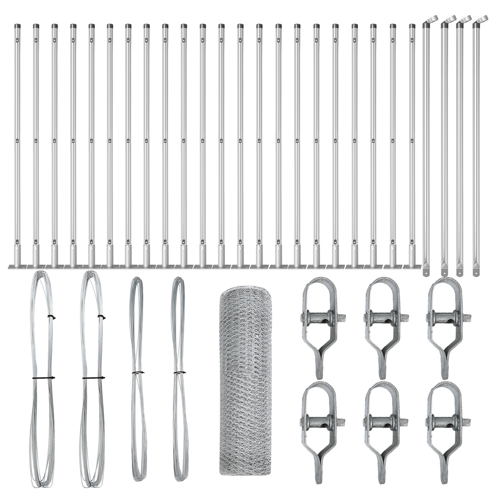 VidaXL hexagonálny plot 0,5×50 m pozinkovaná oceľ, VidaXL plotové stĺpiky so základovými doskami 13 ks Ø32mm 70cm pozinkovaná oceľ