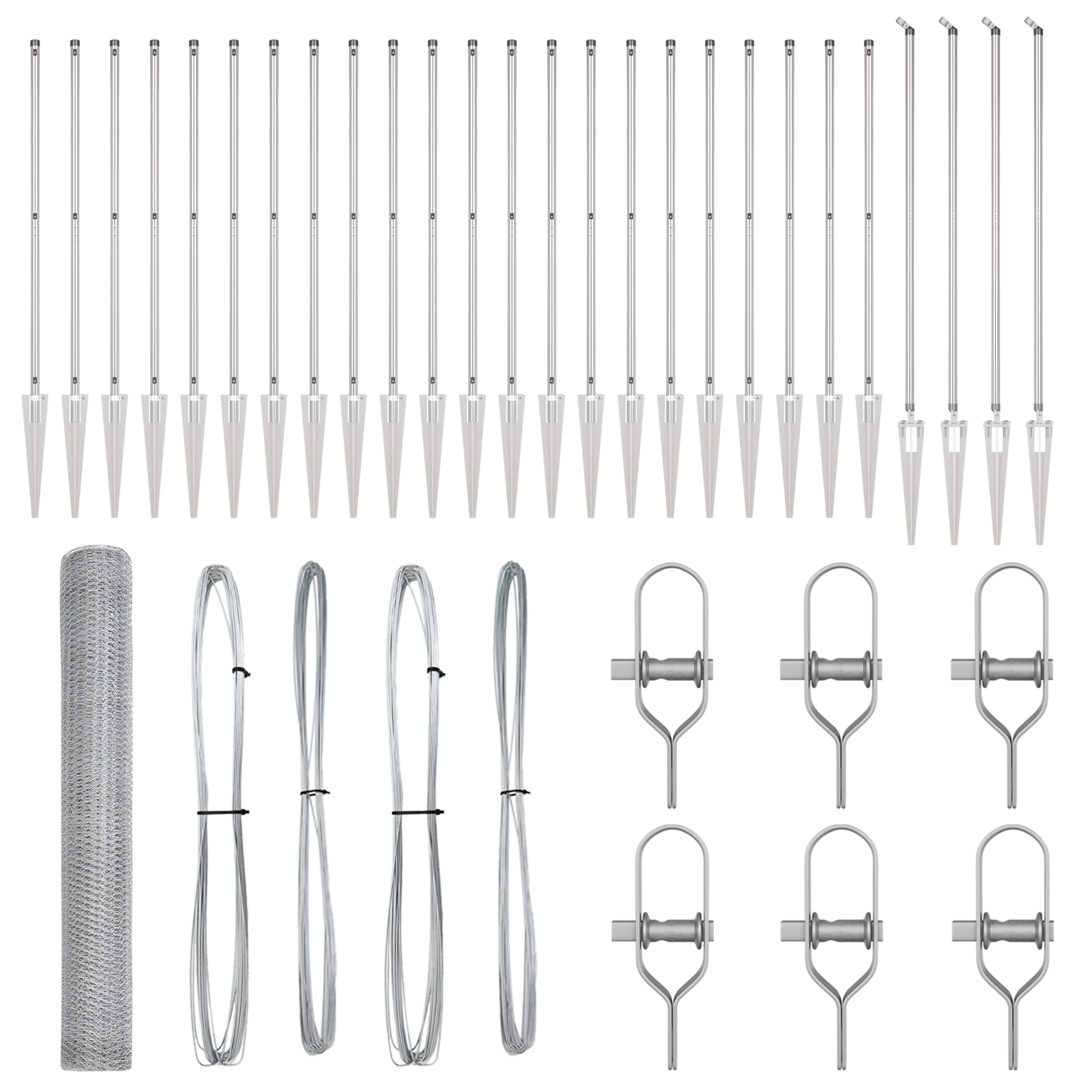 • Kompletná sada: Všetko potrebné, ako sú stĺpiky, kotviace hroty, sieť a konektory, sú zahrnuté pre jednoducho inštaláciu.