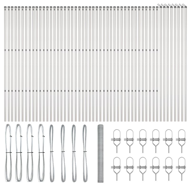 • Kompletná sada: Táto sada prichádza so všetkým, čo potrebuješ na hladké nastavenie: päť rolí plotu, stĺpiky, klipy a drôt.