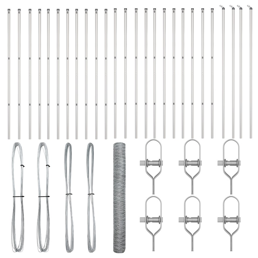 • Trvanlivý materiál: Tento oplôtací set je vyrobený z pozinkovanej ocele, je odolný voči hrdzi a poškodeniu, takže vám dlhodobo poslúži vo vonkajších priestoroch.