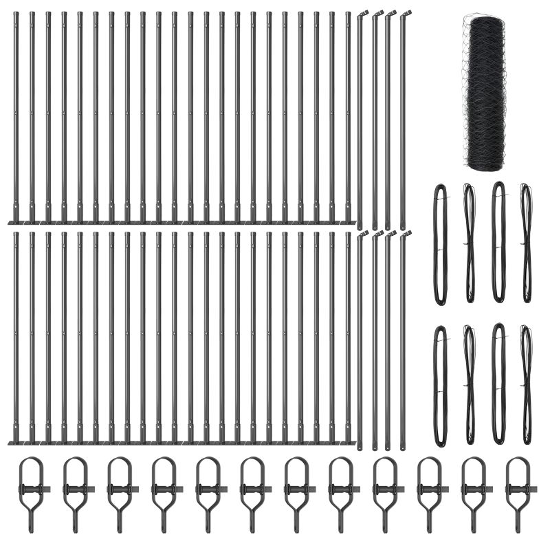 • Kompletná sada: Táto všetko-v-jednom plotová súprava obsahuje všetko potrebné na inštaláciu, ako sú plotová sieť, stĺpy, viazanie a konektory.