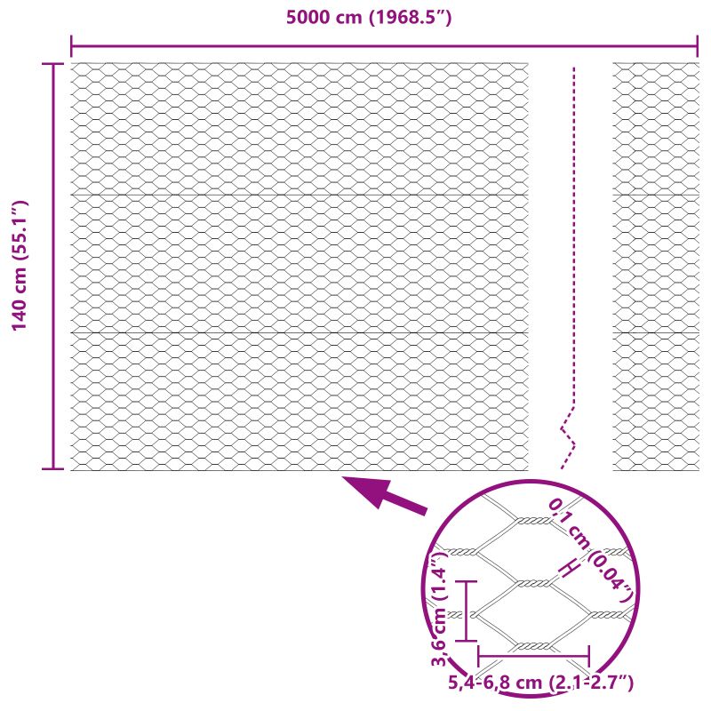 vidaXL Hexagonálny plot Sivý 1.4×50 m Oceľ