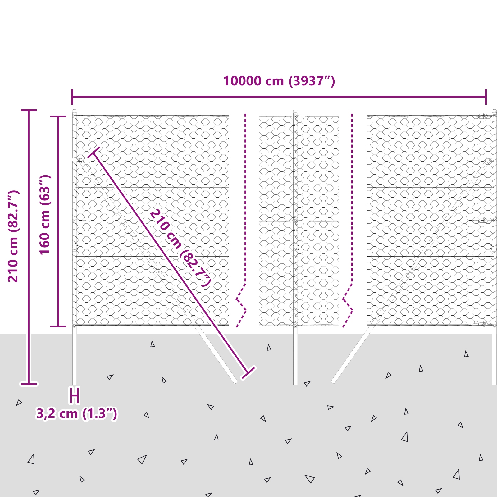 vidaXL Hexagonálny plot Sivý 1.6×100 m Oceľ