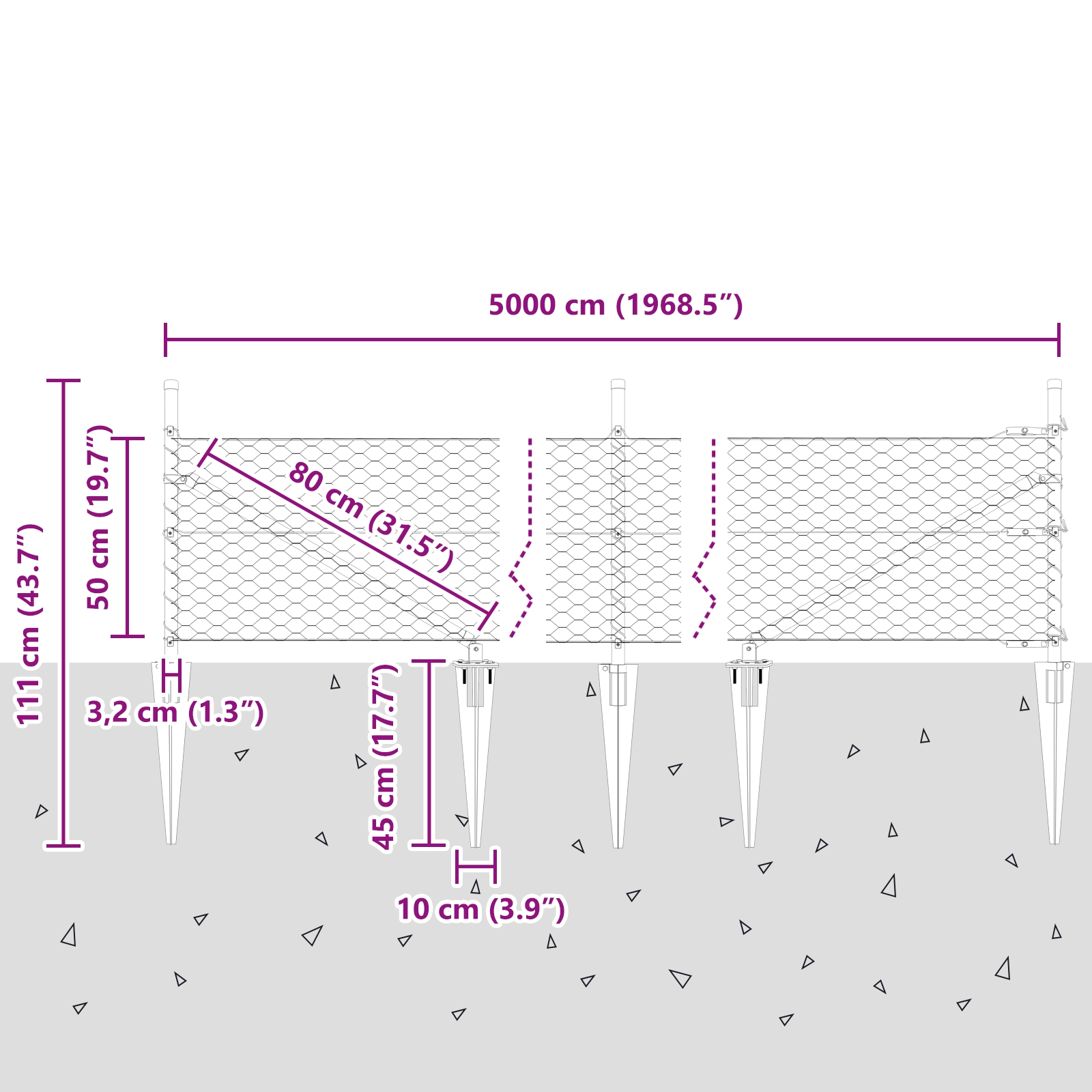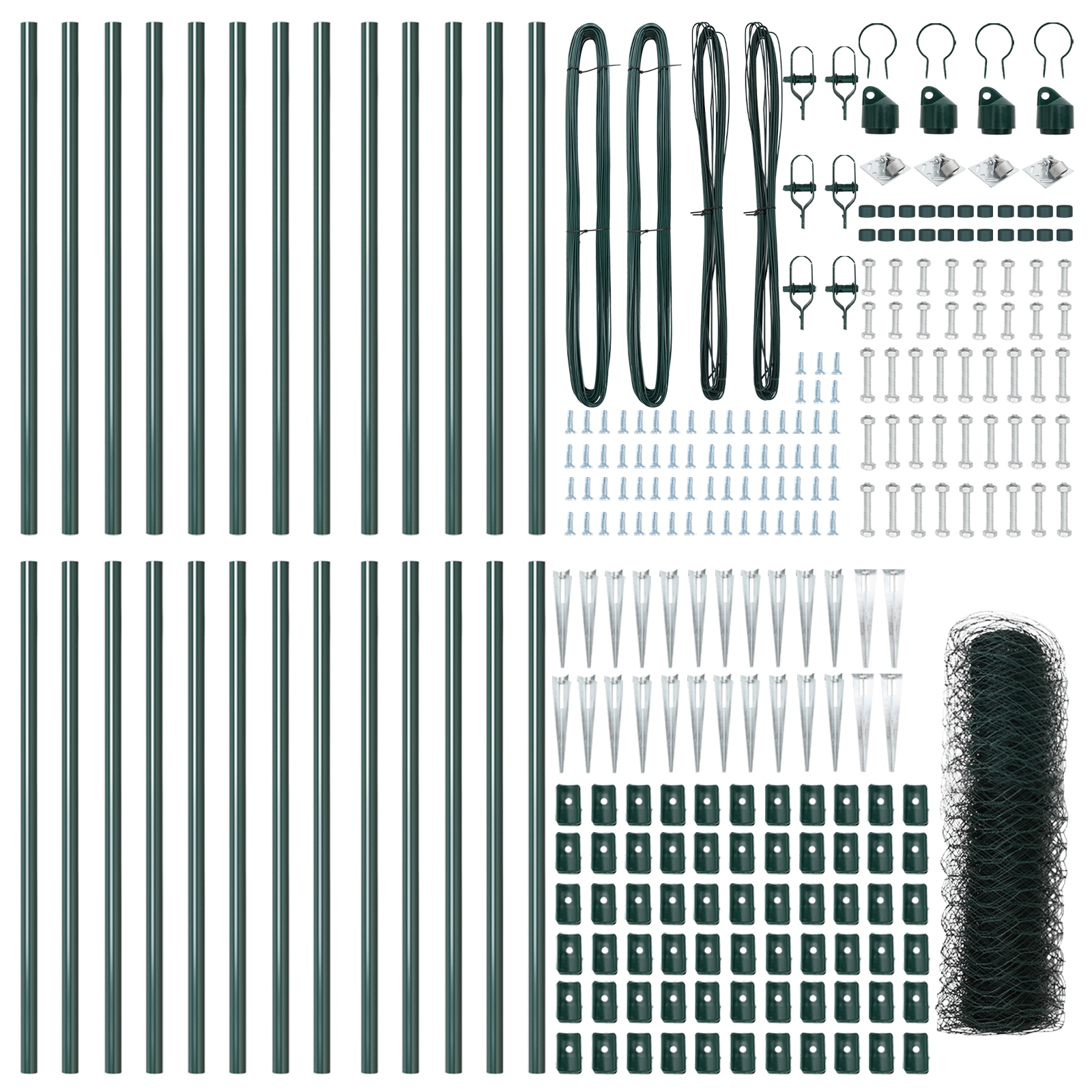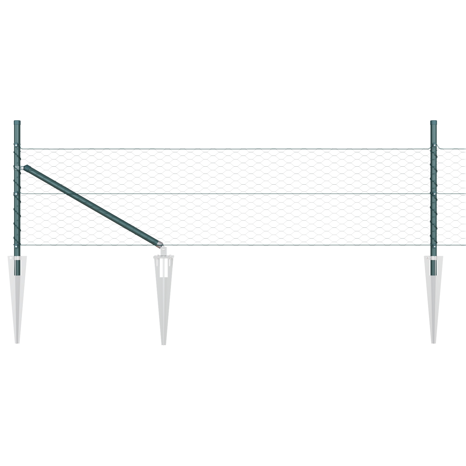 vidaXL Hexagonálny plot Zelený 0.5×50 m Oceľ, vidaXL Stĺpiky na plot so špicom 13 ks Ø32 mm 80 cm Pozinkovaná oceľ