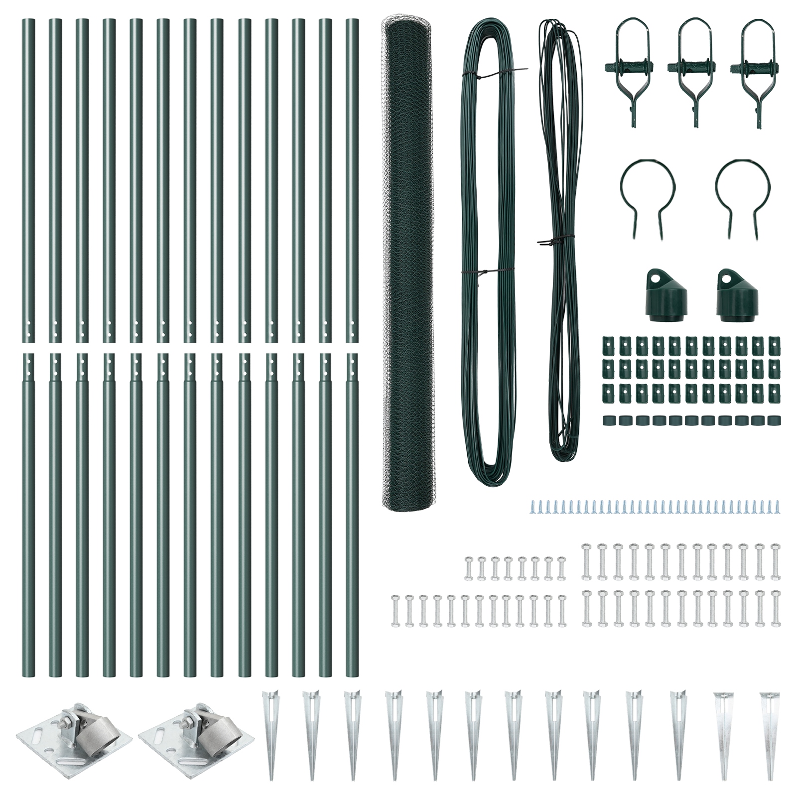 vidaXL Hexagonálny Plot Zelený 1.6×25 m Oceľ, vidaXL Plotové Stĺpiky s Hrotom 13 ks Ø32 mm 180 cm Galvanizovaná Oceľ
