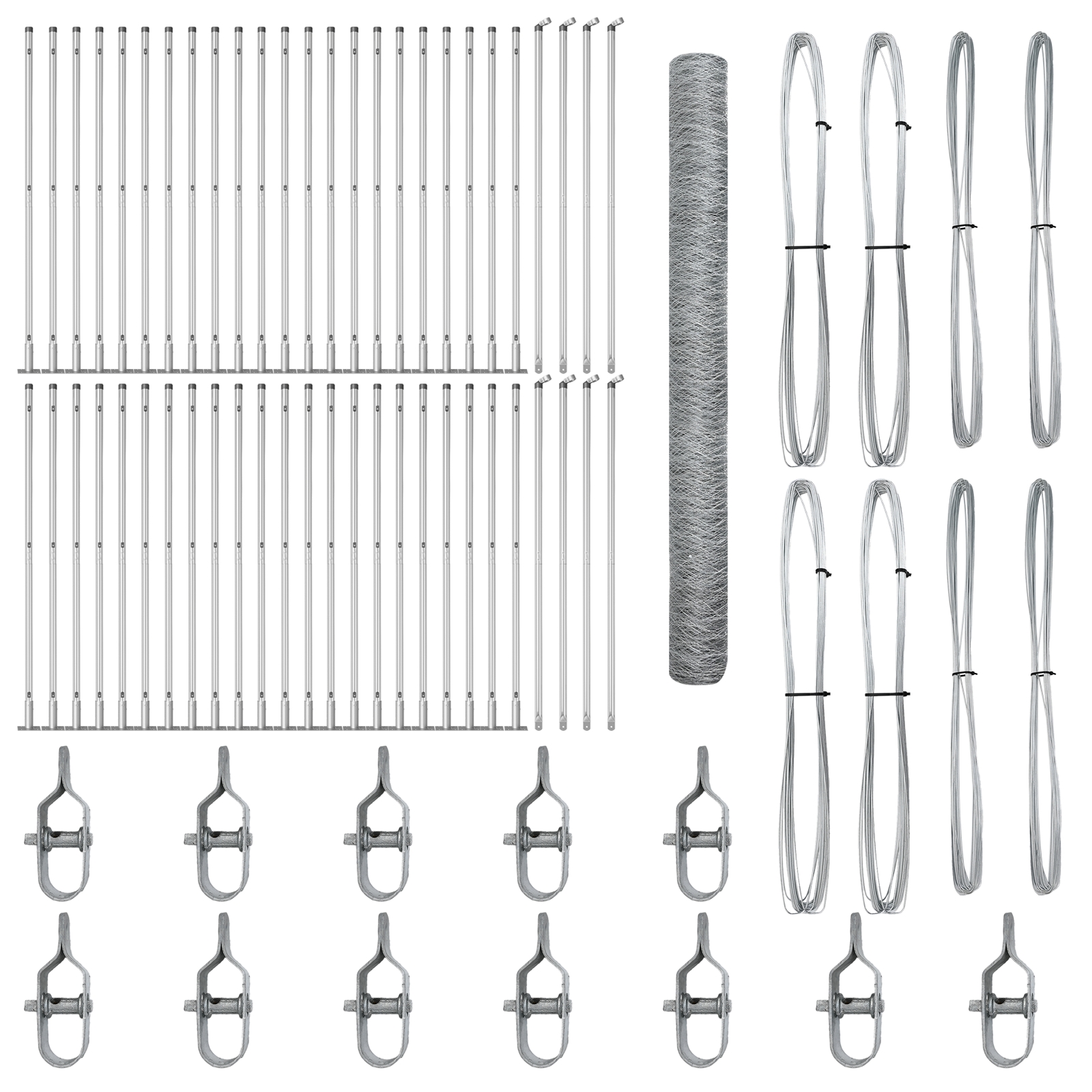 • Kompletný set: Obsahuje všetko, čo potrebuješ – 5 plotových stĺpov, rolku mriežky a klipy – zabezpečuje jednoduchú montáž bez ďalších nákupov.