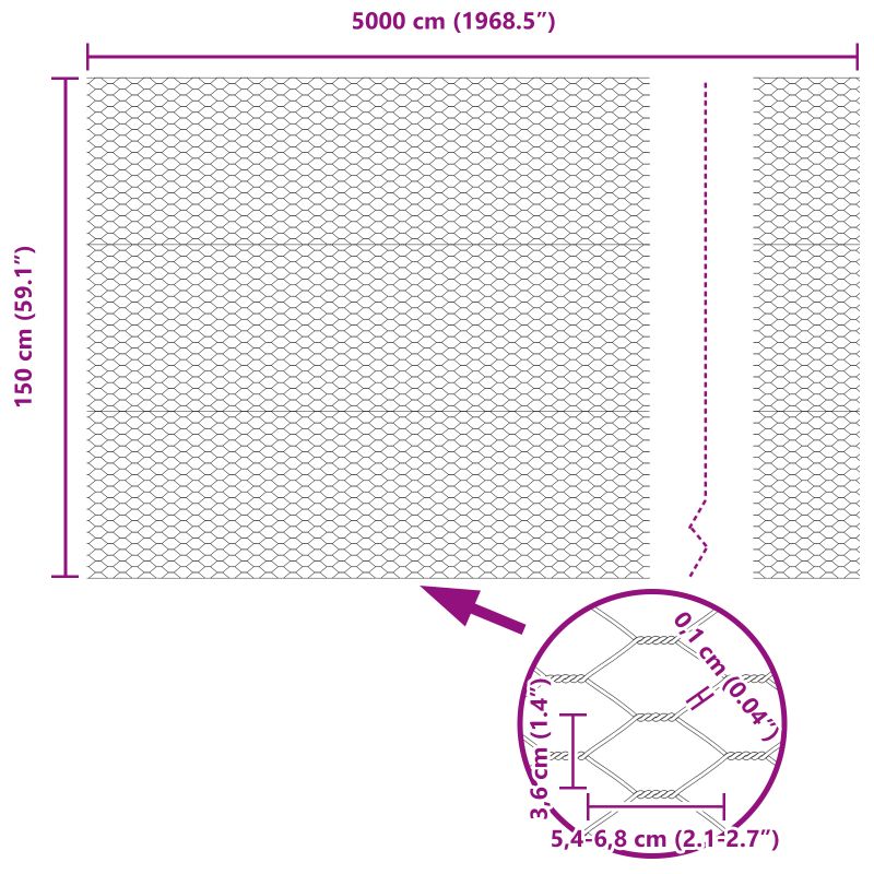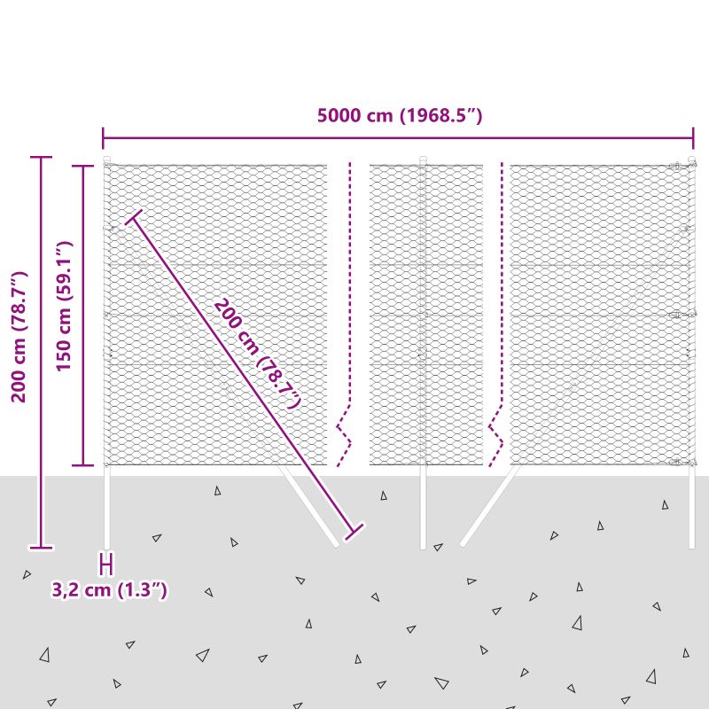 vidaXL Hexagonový plot šedý 1,5×50 m oceľ