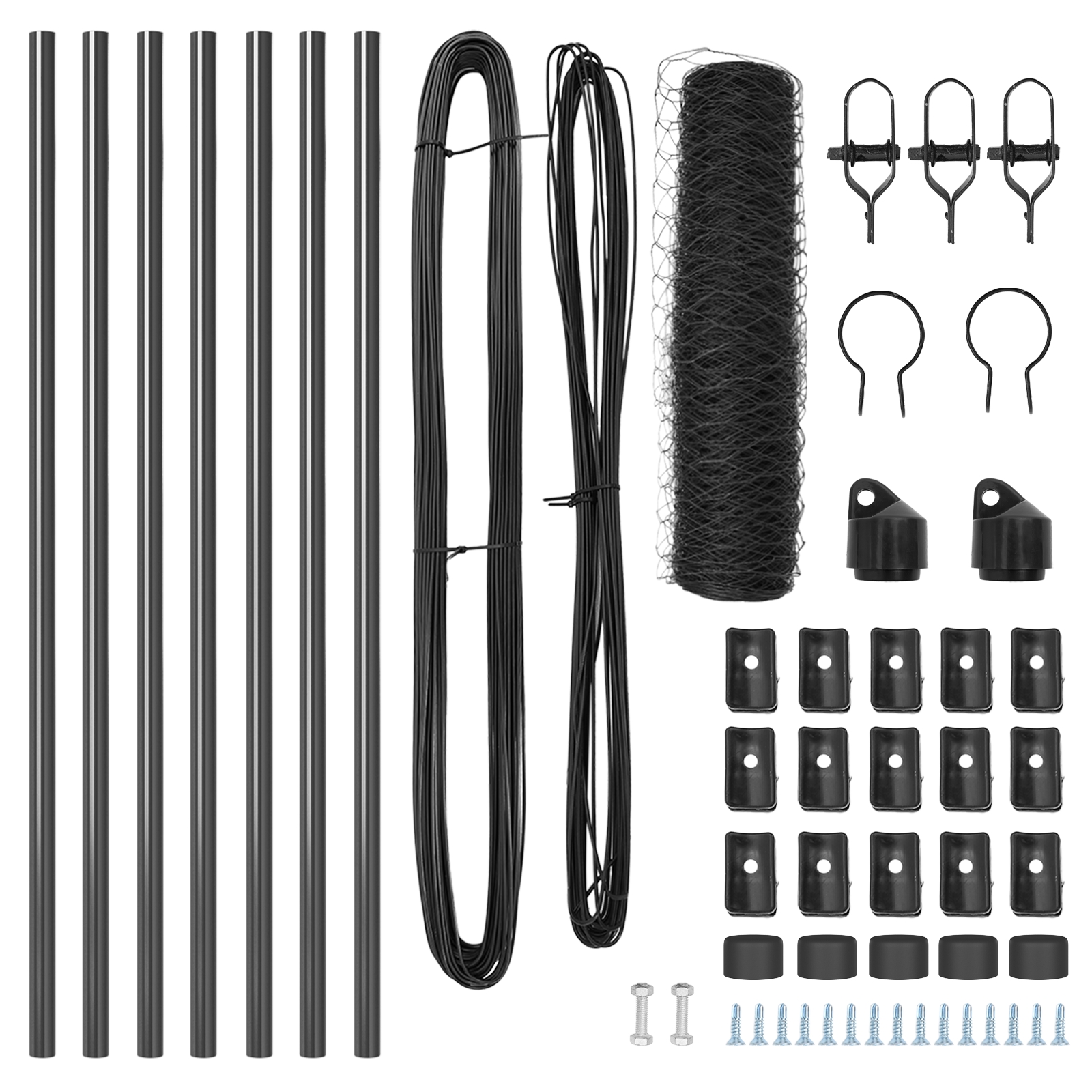 • Kompletná Sada: Tento plotový set má všetko, čo potrebuješ, od plotových stĺpikov cez sieťové role až po drôtené kravaty.