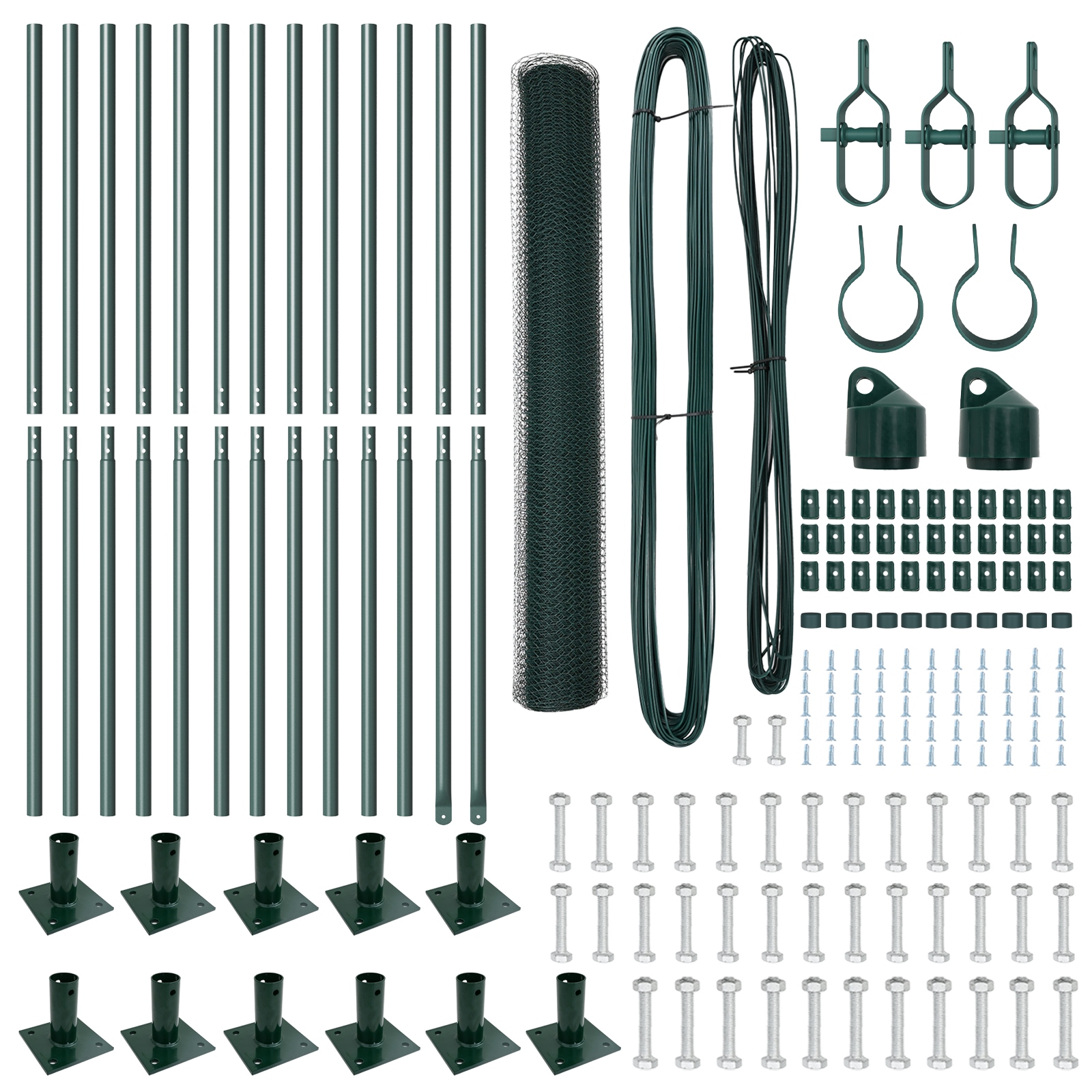 • Kompletná súprava: Táto sada plotu prichádza s plotovými príspevkami, roľou sieťoviny a všetkými potrebnými súčiastkami na bezproblémovú inštaláciu.