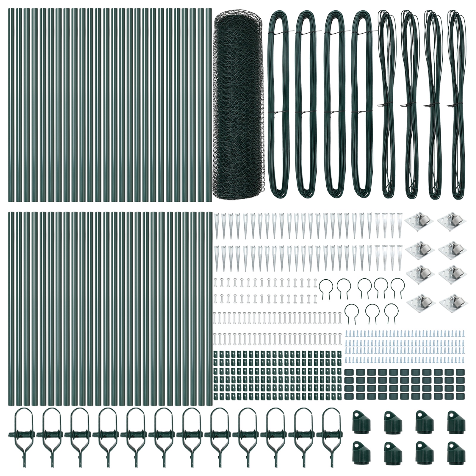 vidaXL Hexagonový plot Zelený 0,6×100 m Oceľ, vidaXL Plotové stĺpy s hrotom 13 ks Ø32 mm 80 cm Pozinkovaná oceľ