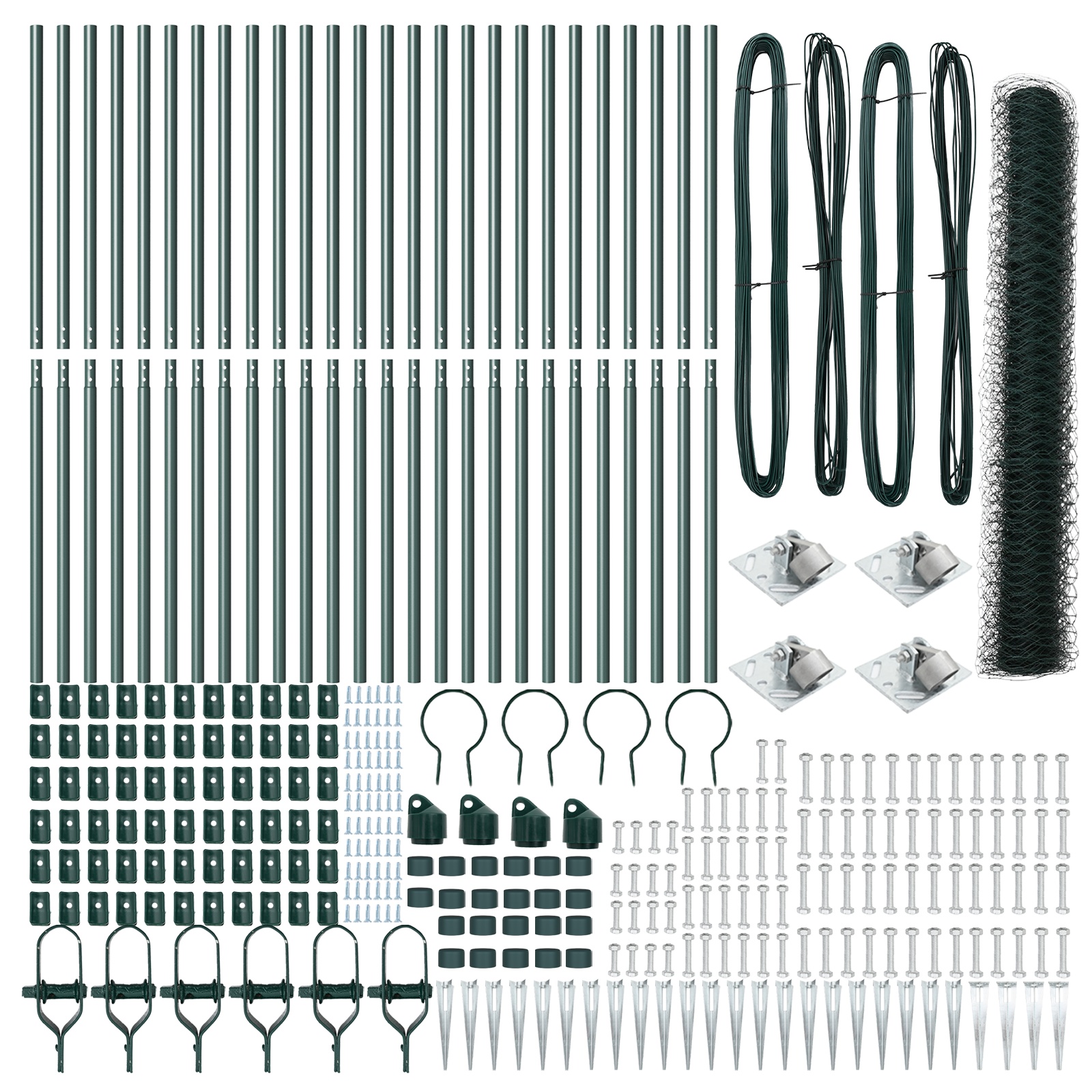 vidaXL hexagónový plot Zelený 1.4×50 m Oceľ, vidaXL plotové stĺpiky so spike 13 ks Ø32 mm 160 cm Pozinkovaná oceľ