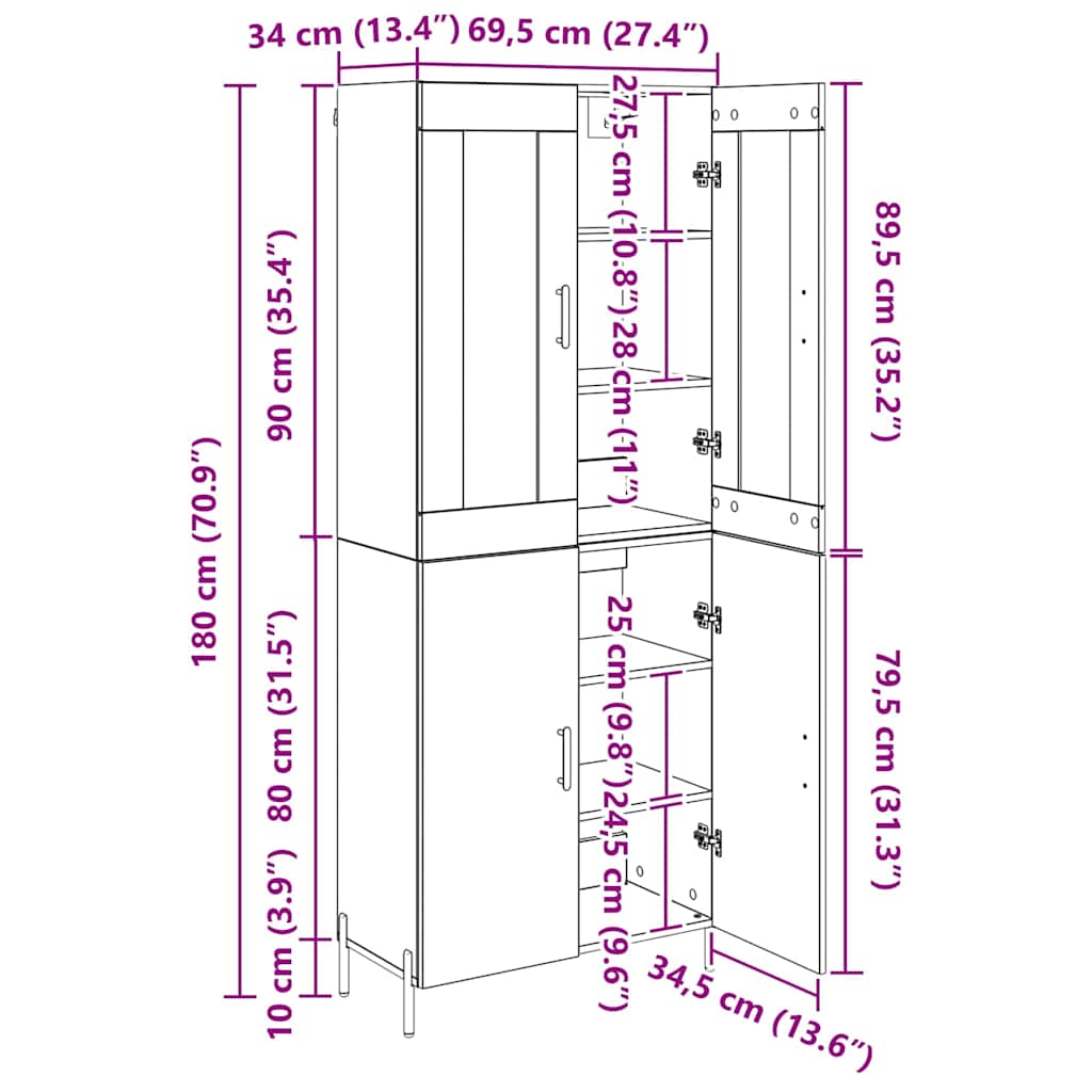 • Celkové rozmery: 69,5 x 34 x 180 cm (D x Š x V)