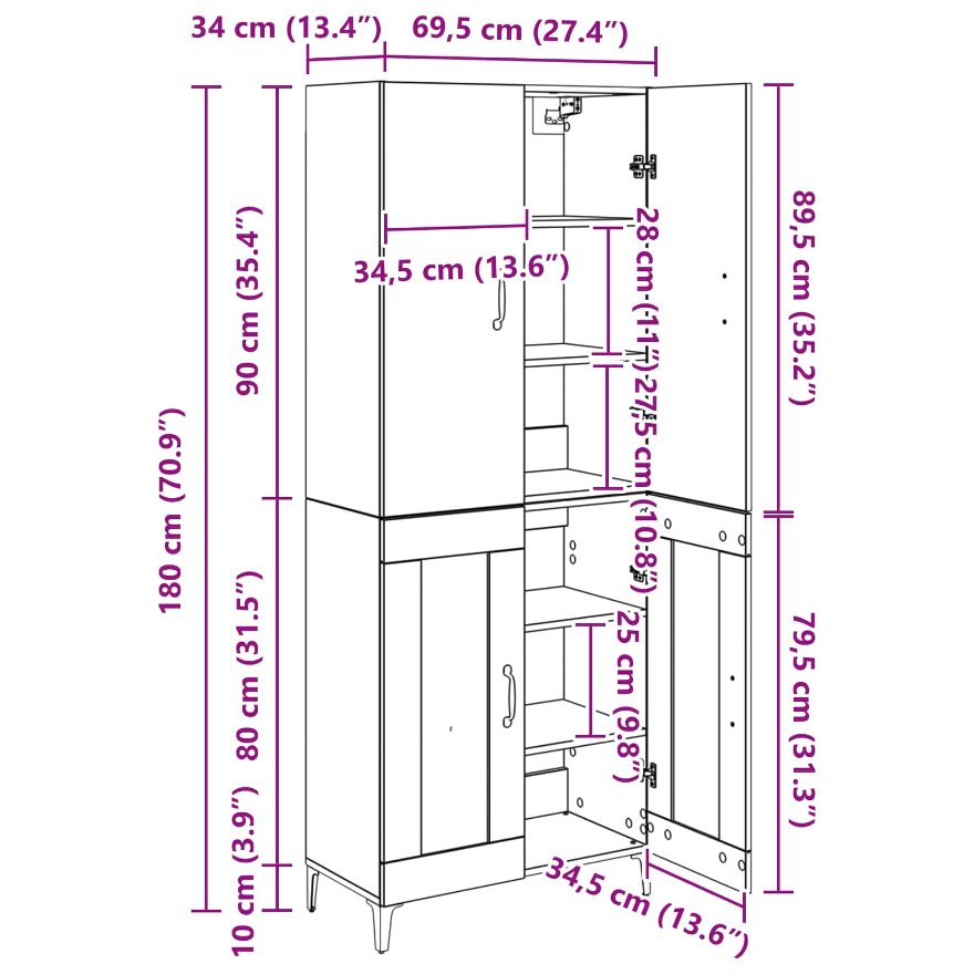 vidaXL Highboard Čierny dub 69,5 x 34 x 180 cm Kompozitné drevo vidaXL Highboard Čierny dub 69,5 x 34 x 180 cm Kompozitné drevo
