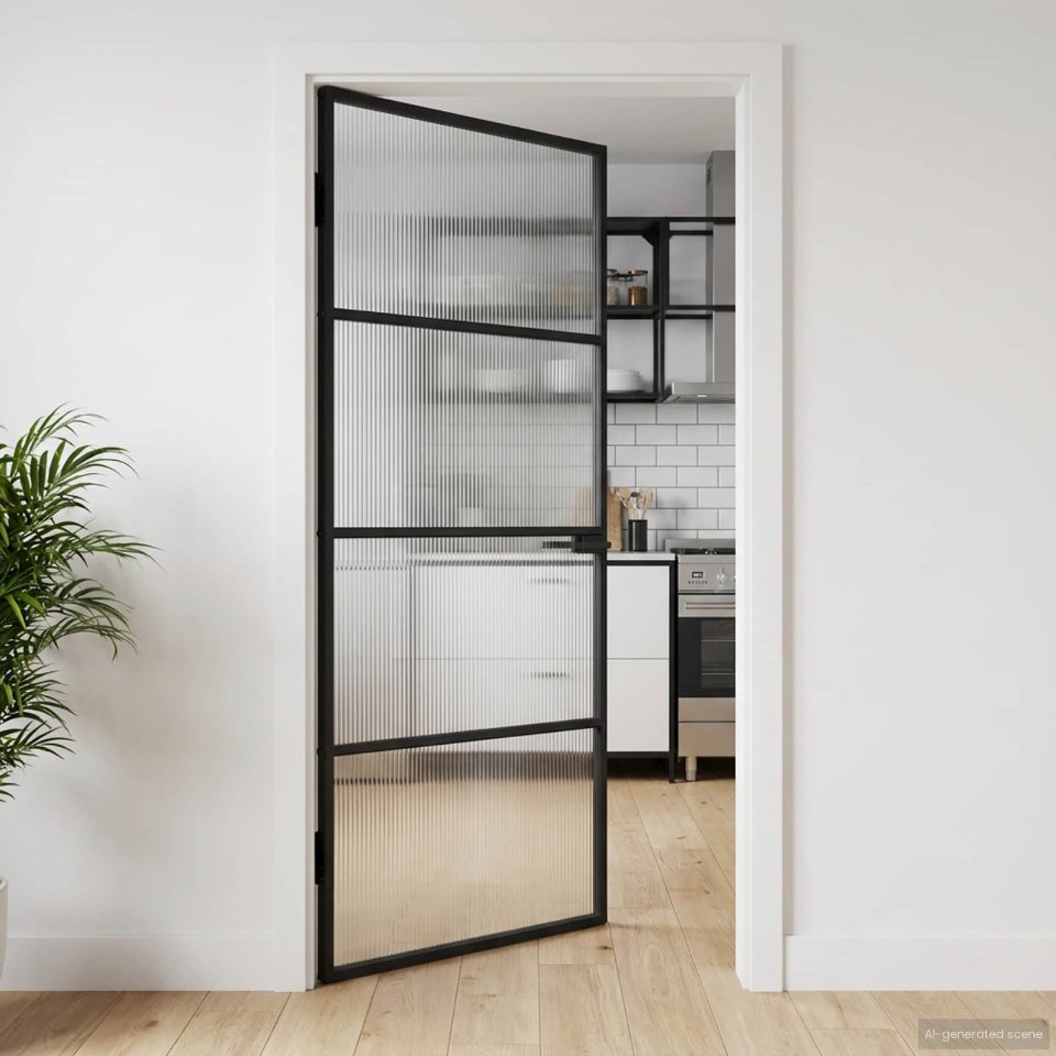 Tieto interiérové dvere majú moderný, no jednoduchý dizajn s rozmermi 76×201,5 cm. Čierny hliníkový rám a tvrdené sklo spájajú eleganciu a funkčnosť, ideálne pre akýkoľvek priestor.