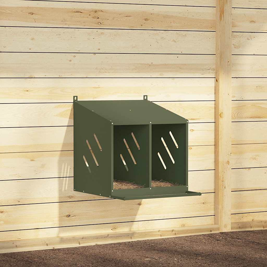 vidaXL Hniezdo pre kurčatá s 2 priehradkami, olivovo zelený kov
