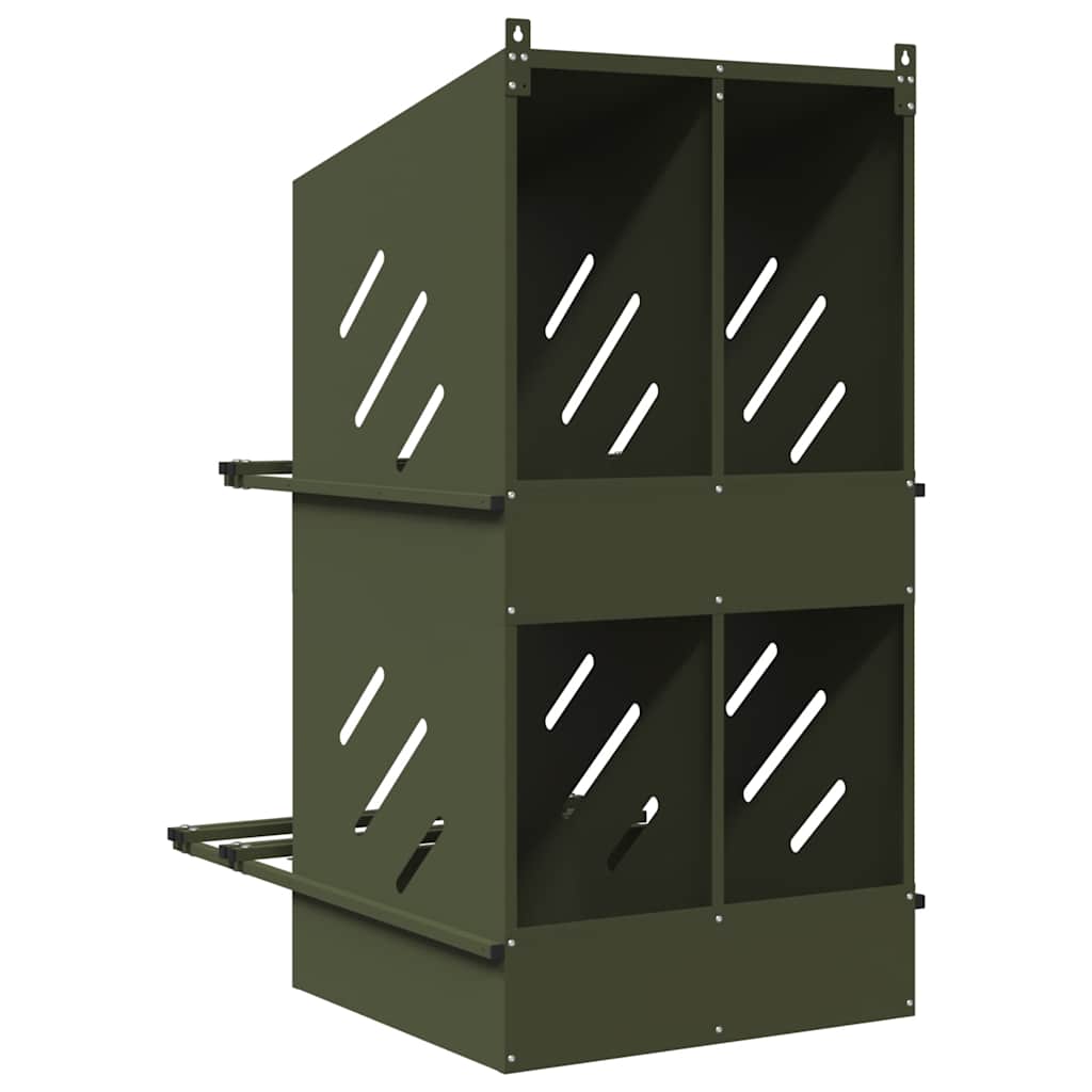 vidaXL Hniezdo pre kurčatá s 4 priehradkami, olivovo zelený kov