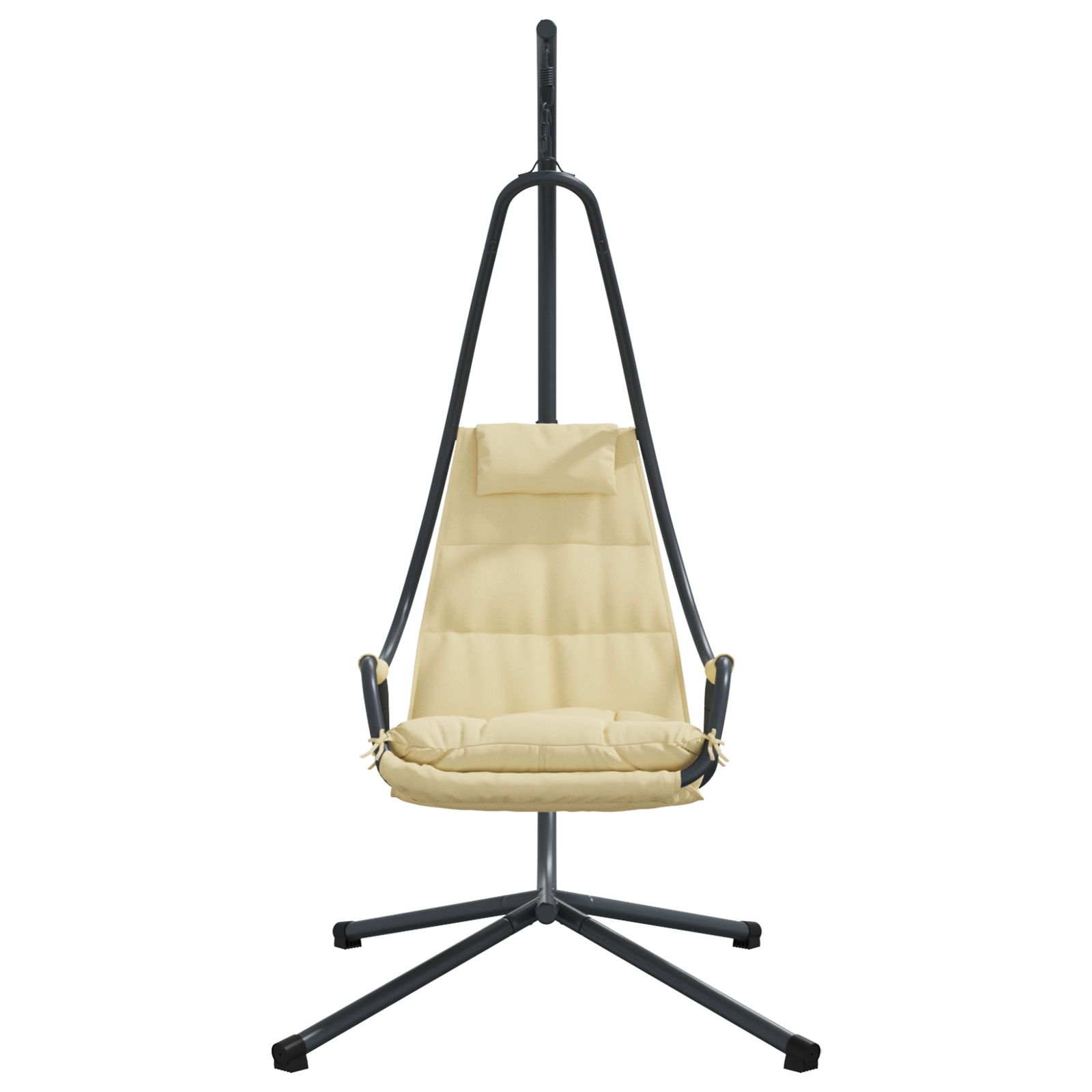vidaXL Hojdací stolček so stojanom a poduškou béžová oceľ