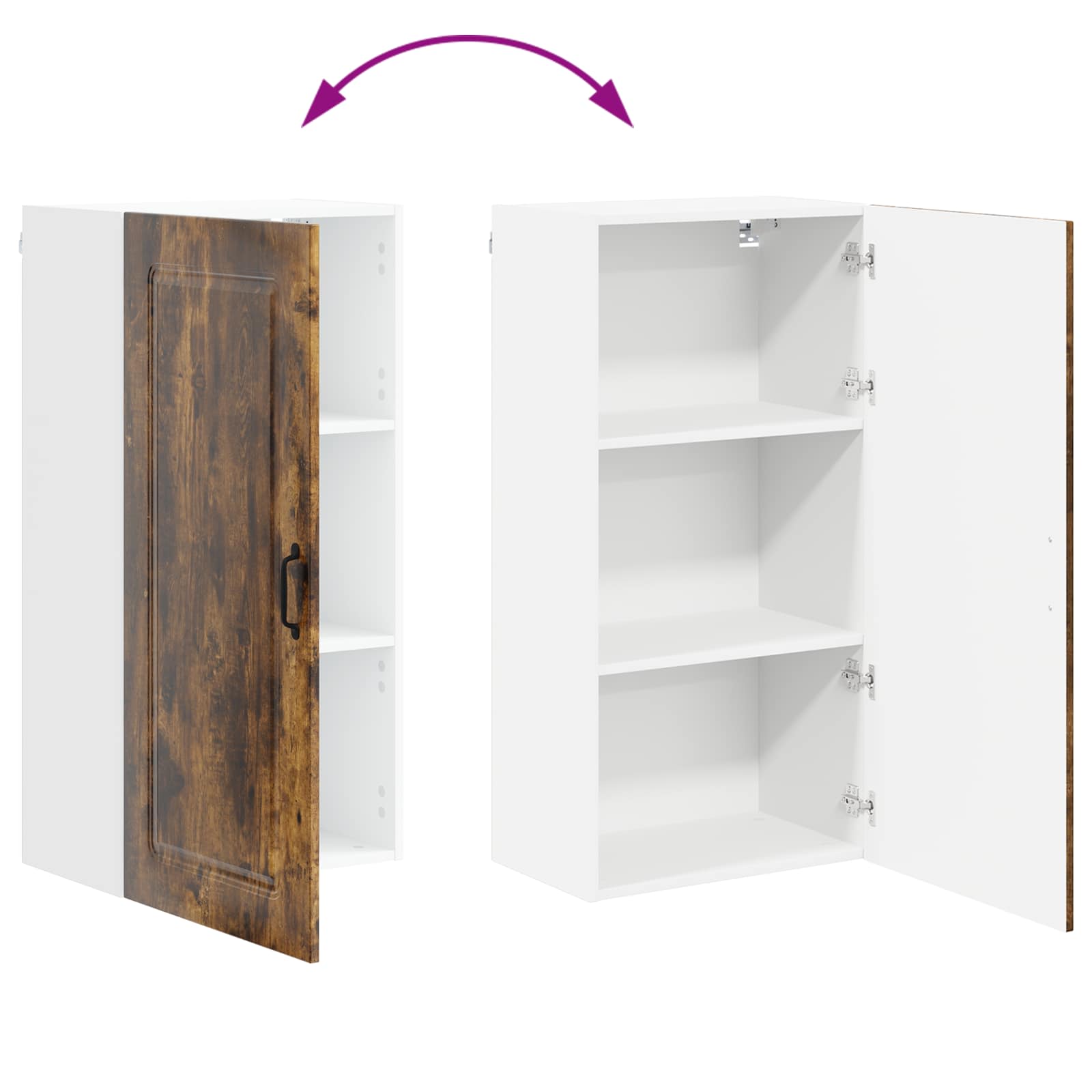 - Obsahuje komponenty: Navrhnutý s policami pre rôzne úložné možnosti, tento kabinet ponúka viacero oddelení na efektívne uskladnenie kuchynských vecí. Kovové úchyty dodávajú funkčný a pekný dotyk, takže sa k úložným priestorom dostanete jednoducho.